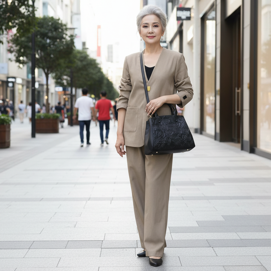 This genuine leather handbag features an embossed floral design, combining elegance with practicality. Its spacious interior and secure zip closure offer ample storage, while the dual handles provide comfortable carrying - ideal for professional and office settings.
