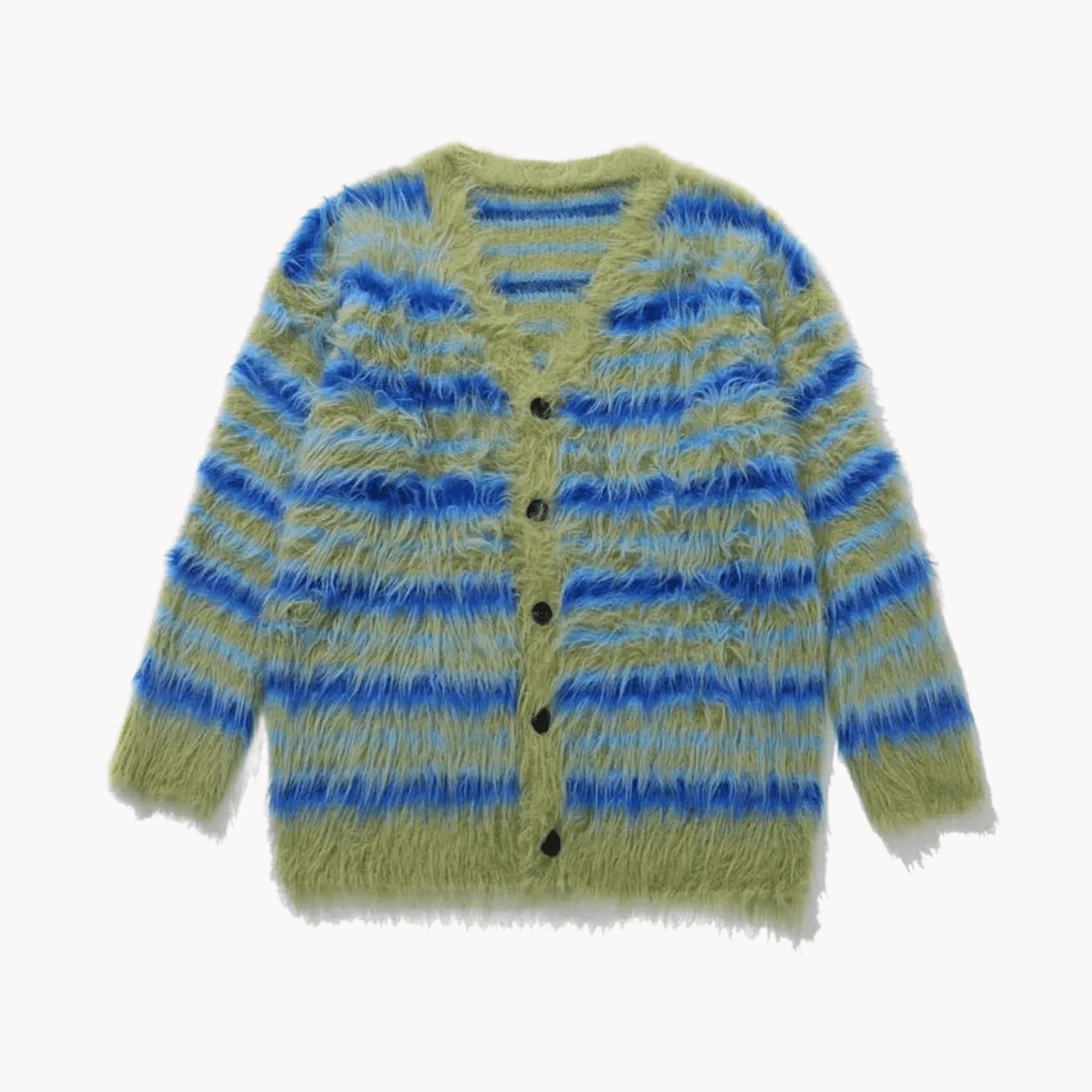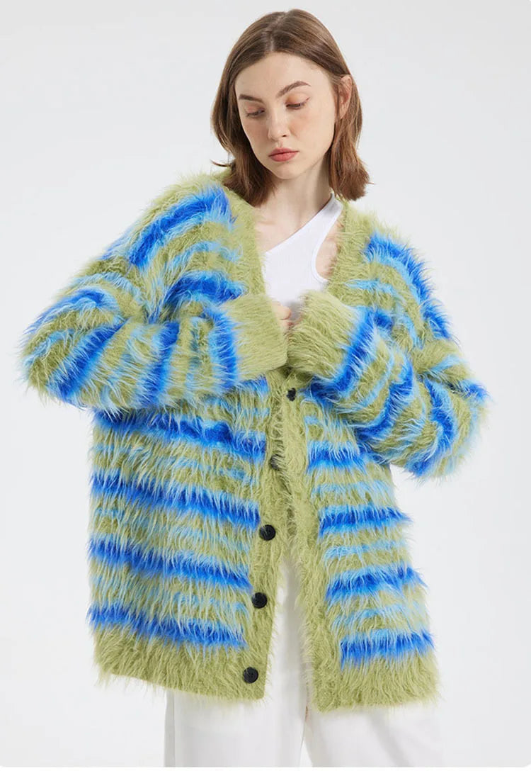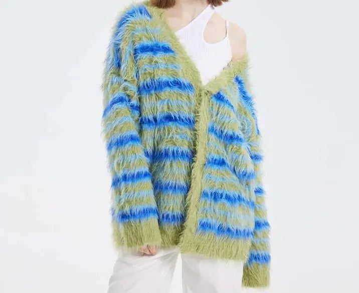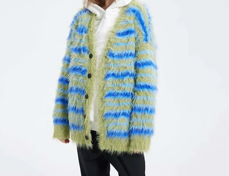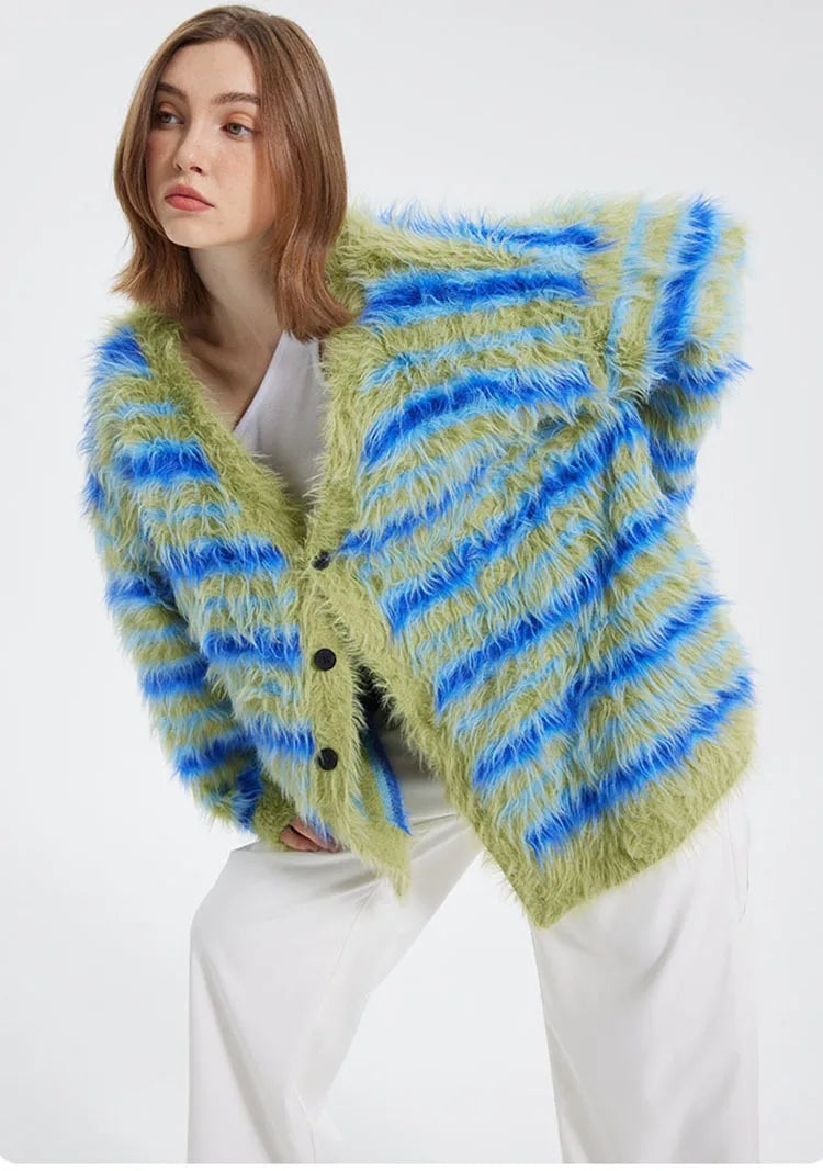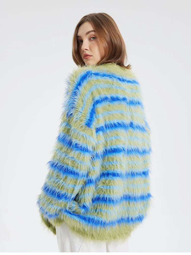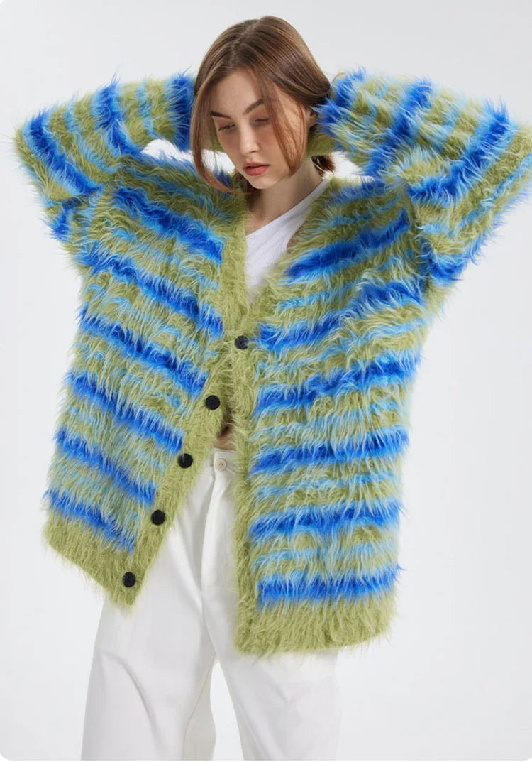 Fuzzy Striped Knit Cardigan