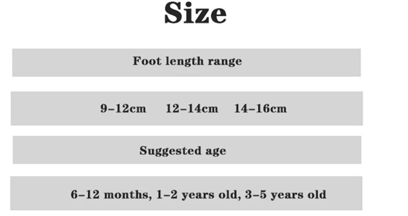 Size:6-12 months,1-2 years old,3-5 years old,6-7 years old,8-12 years old