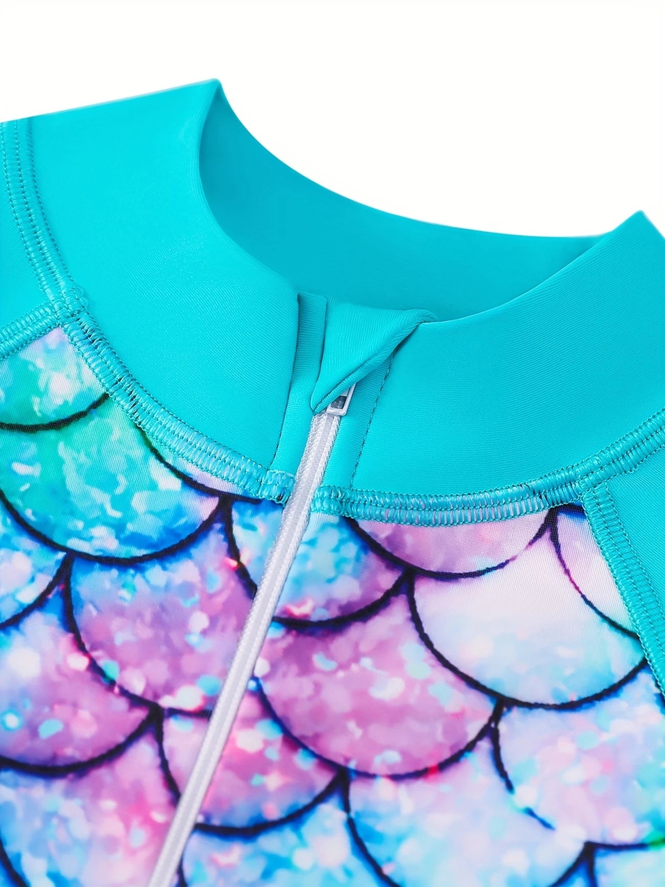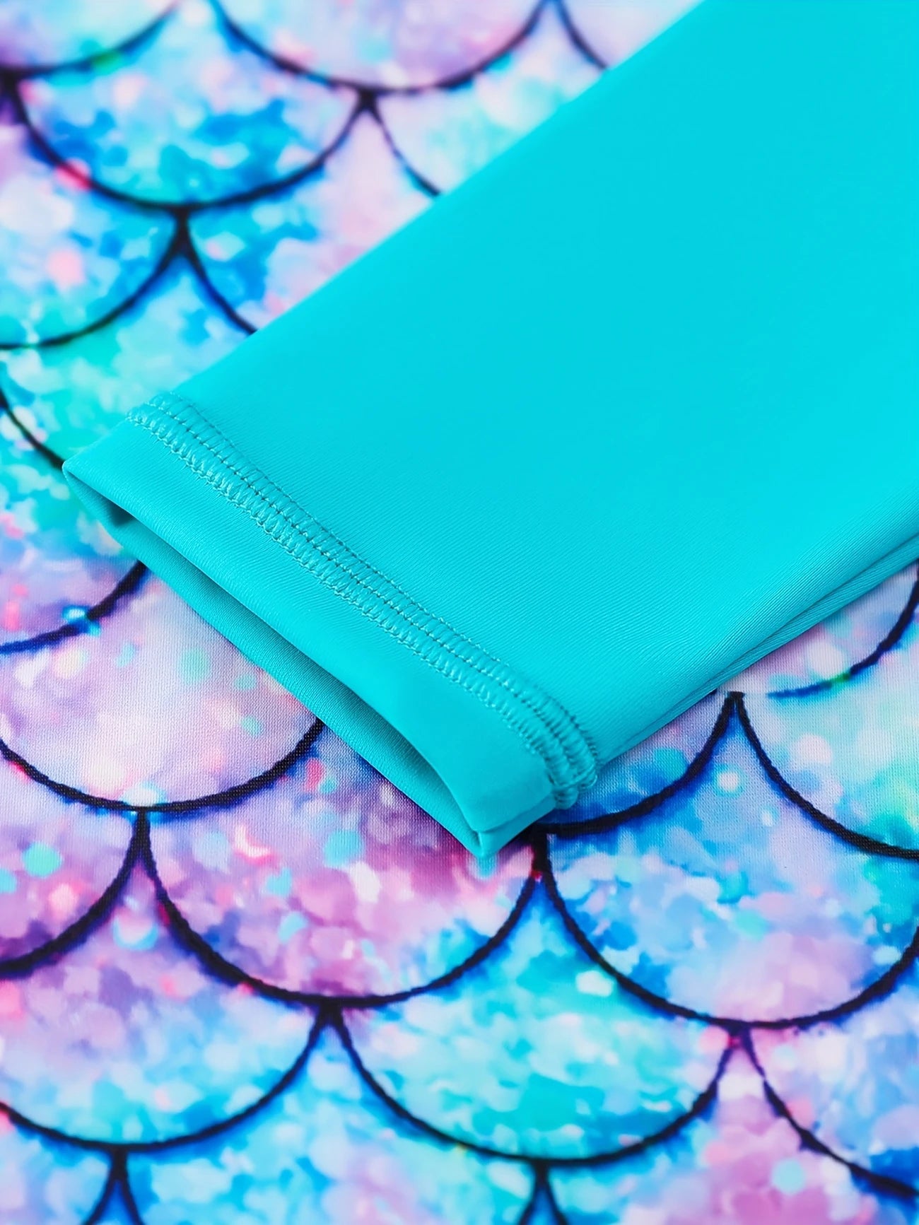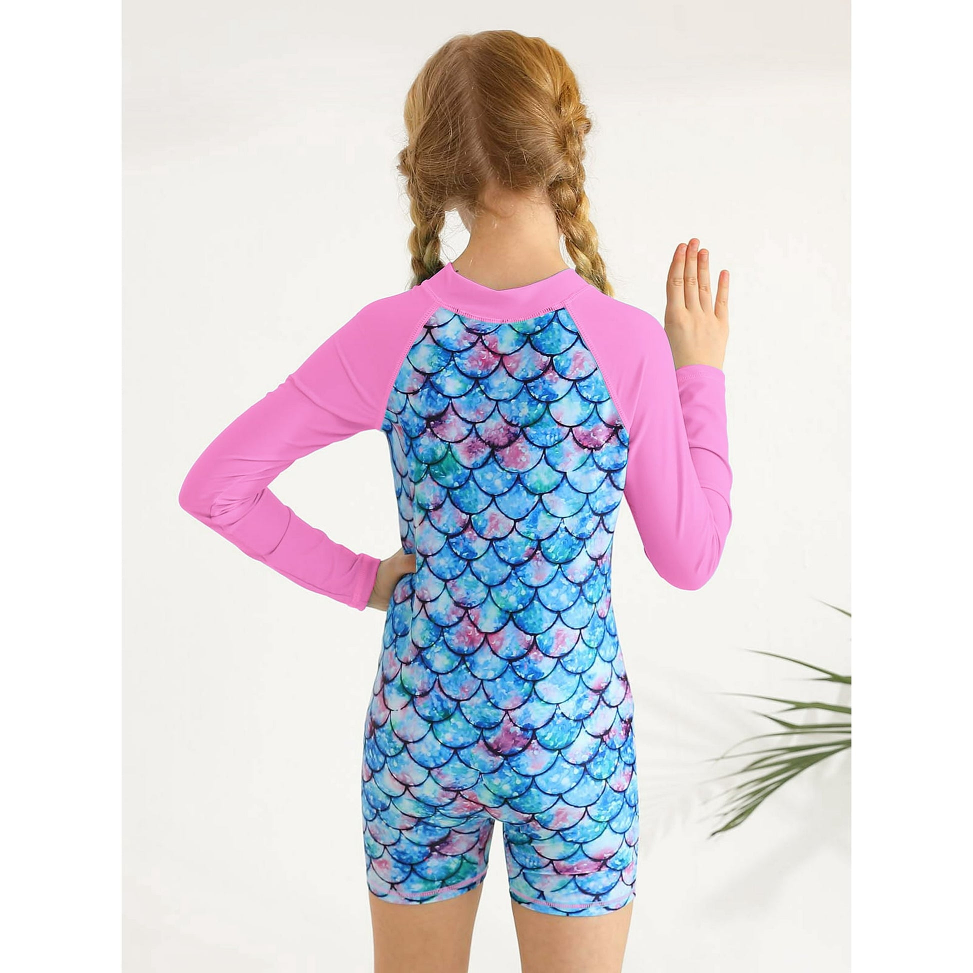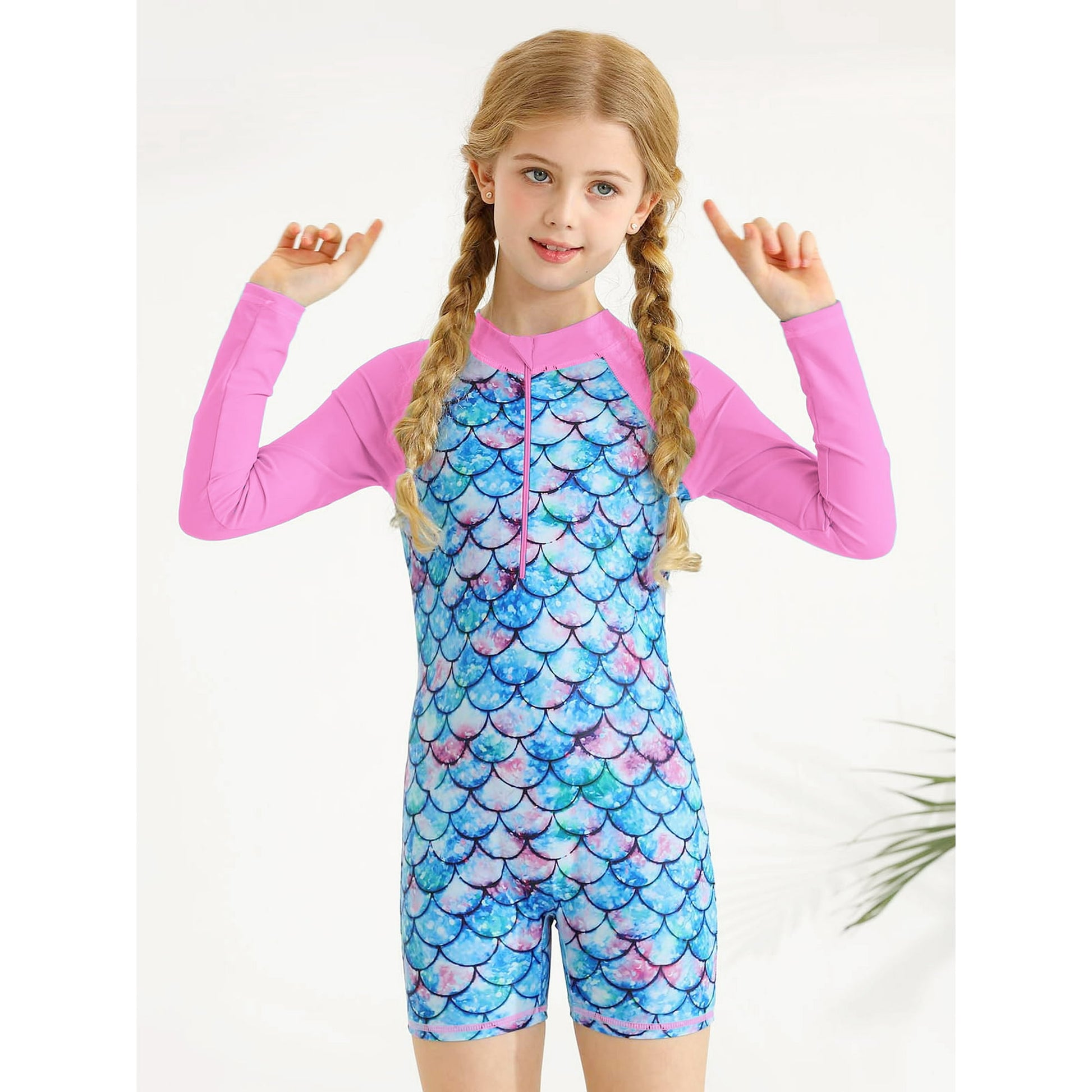 Girls Mermaid One Piece Rash Guard Swimsuits