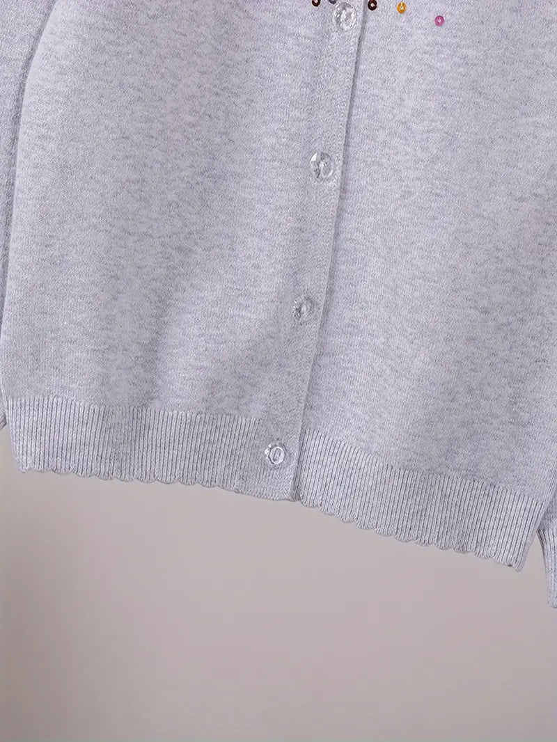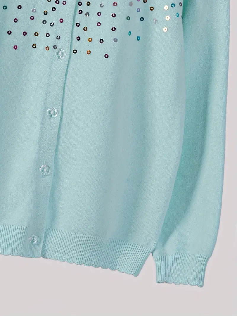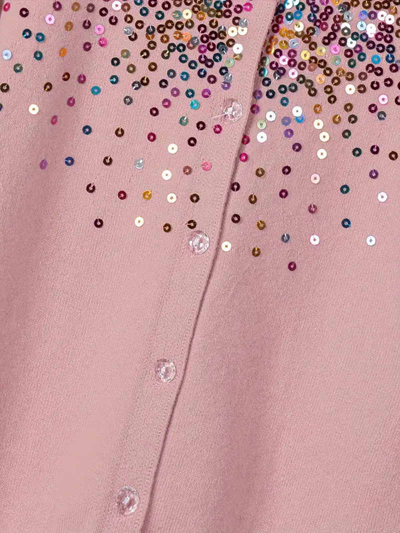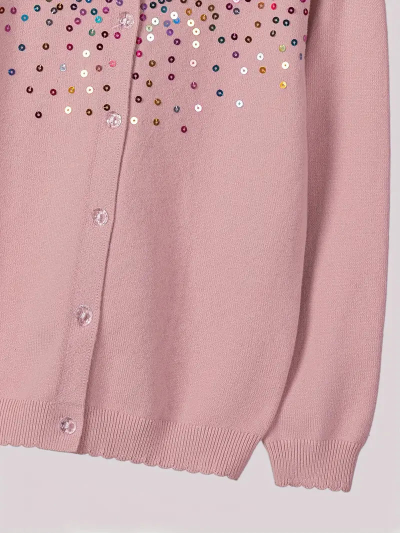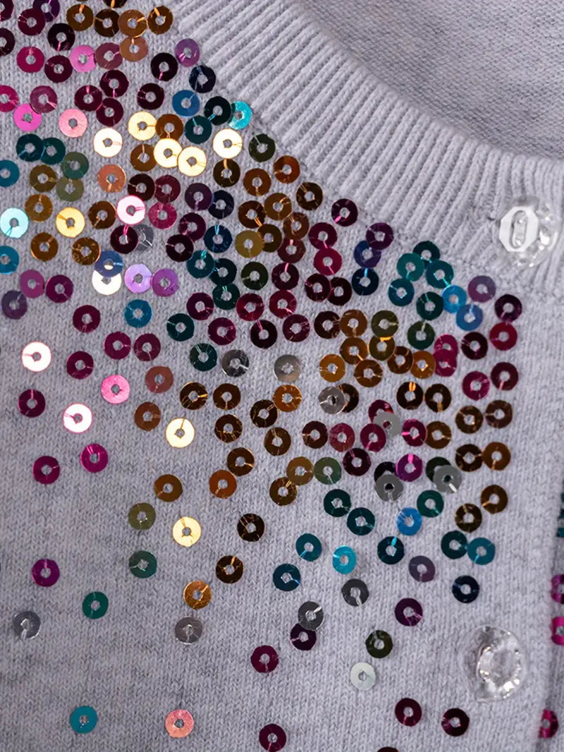 Girls' stylish and vibrant sequined round neck cardigan adds a sparkling touch to any casual outfit. Designed for year-round wear, it offers both comfort and flair, making it an ideal choice for everyday activities or special occasions. The lightweight fabric ensures ease of movement, while the sequined detail brings a fun, eye-catching element that your child will love to wear again and again. Elevate her wardrobe with this versatile and charming cardigan that combines practicality with playful elegance.