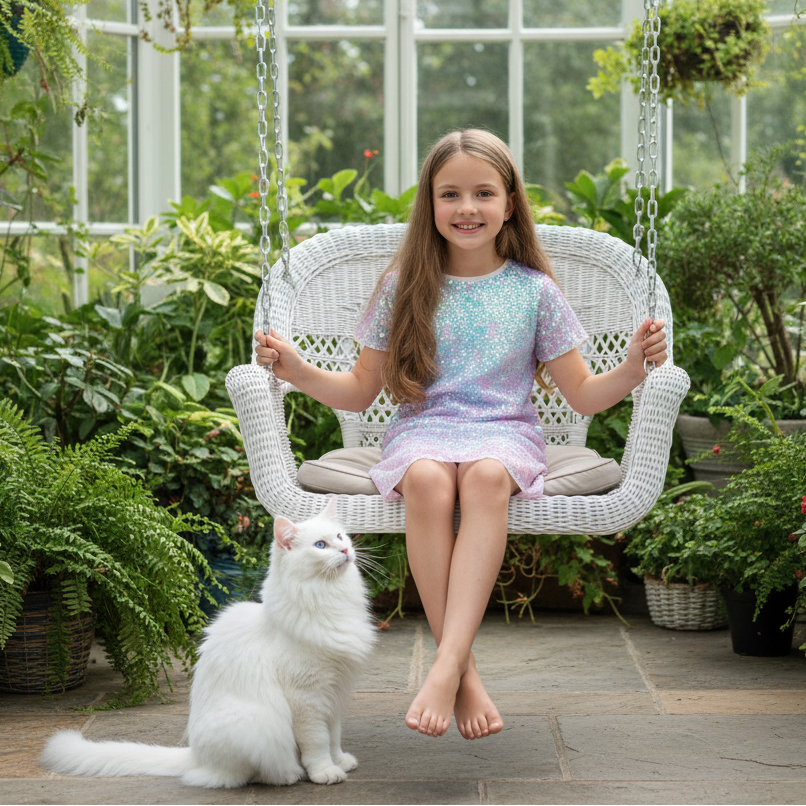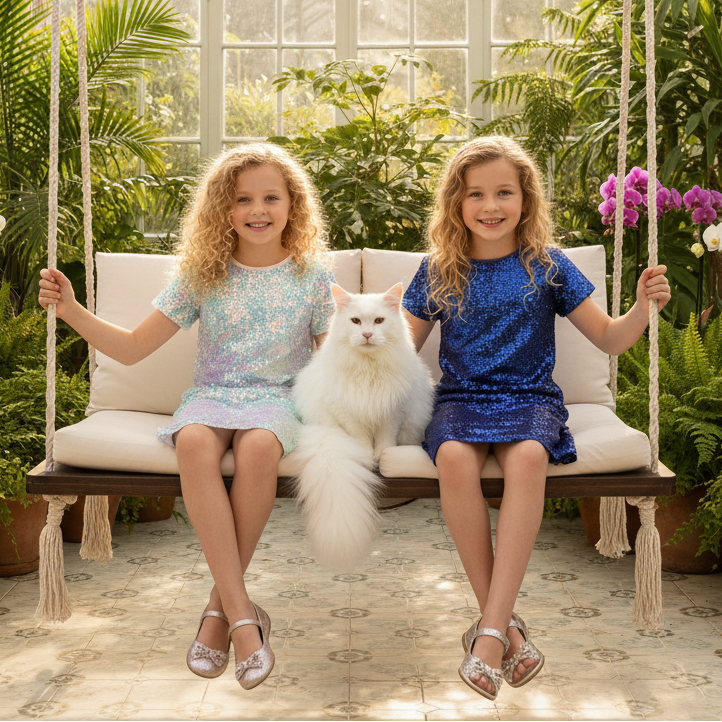 Twirl into sparkle with these sequined A-line dresses for girls! Featuring short sleeves and a round neckline, it’s the perfect mid-length special occasion dress for all season fun. Whether it’s a casual day out or a fancy event, this easy-care princess dress offers a comfy fit and a sleek look. Made from durable polyester material, it’s ready for all her adventures in style and comfort!