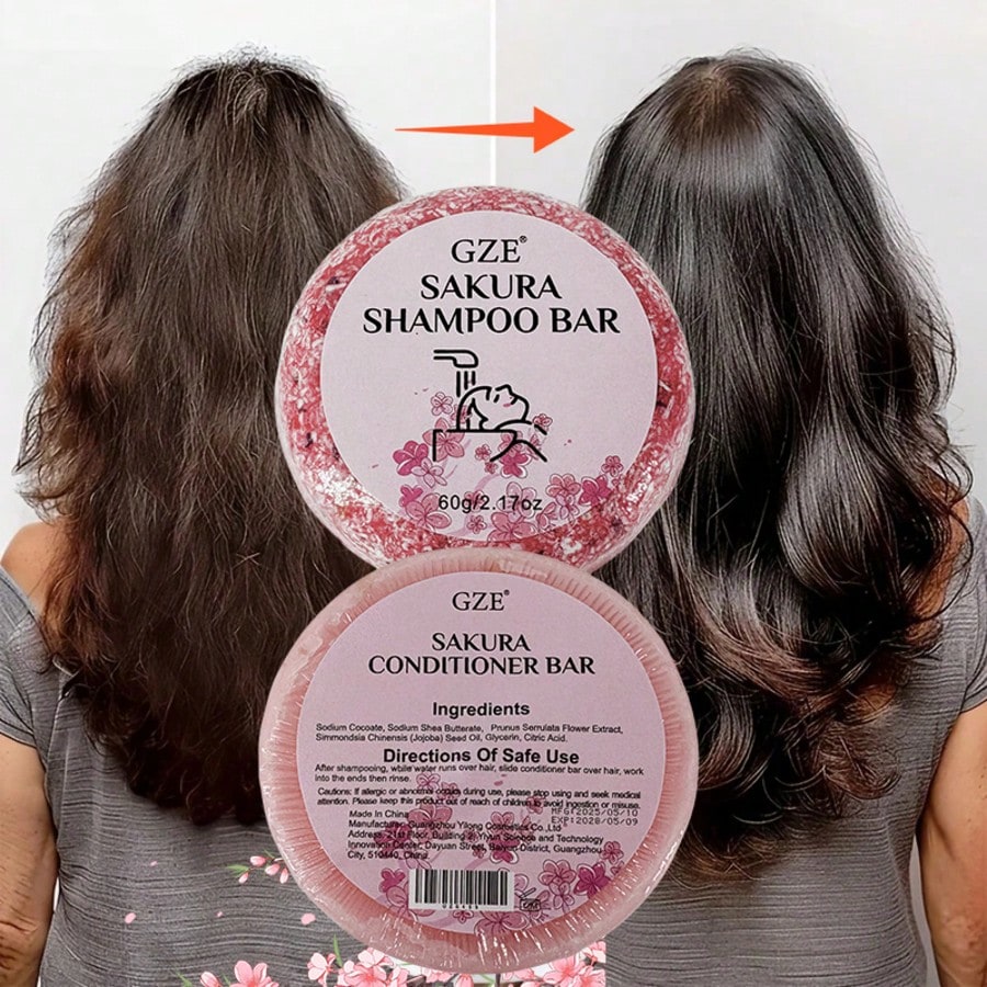 Sakura Shampoo and Conditioner Bars Set - handcrafted for deep cleansing and intense hydration. This dual pack gently restores damaged, dry hair and reduces split ends, leaving your hair soft, fragrant, and moisturized with lasting freshness.