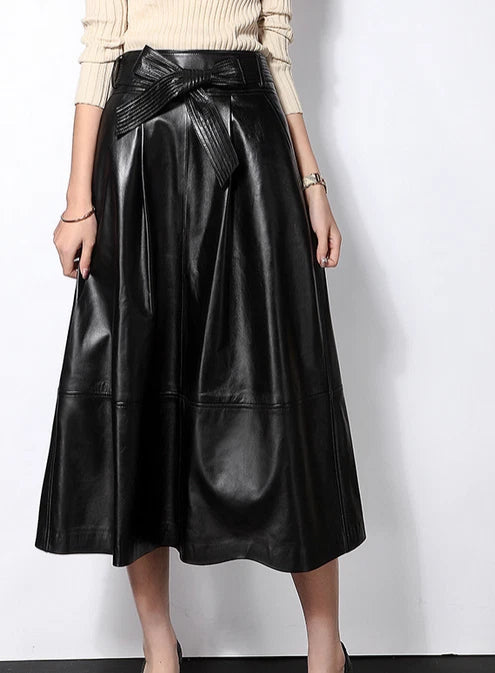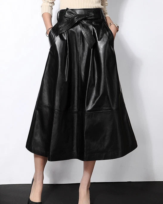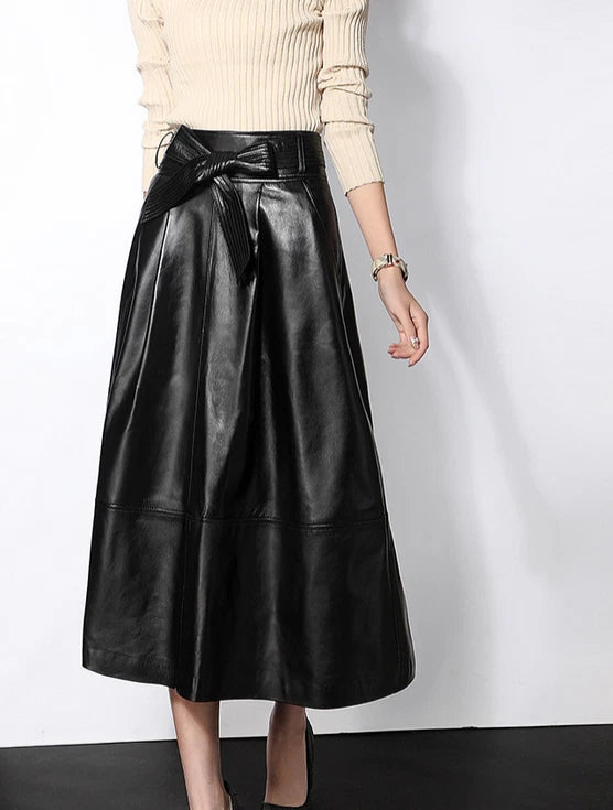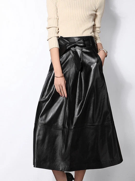 Lautaro Haining Genuine Leather A-Line Midi Skirt