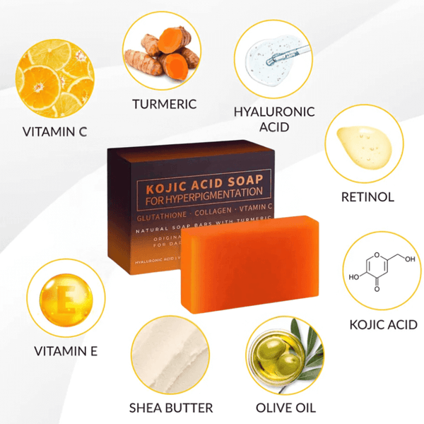 Unleash the power of anti-oxidant ingredients with turmeric and kojic acid soap. This soap bars original formulation effectively reduces skin pigmentation for a more translucent, glowing skin. Kojic acid soap aids in reducing the appearance of acne marks.