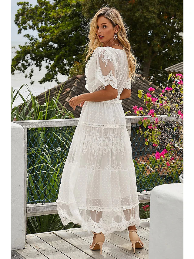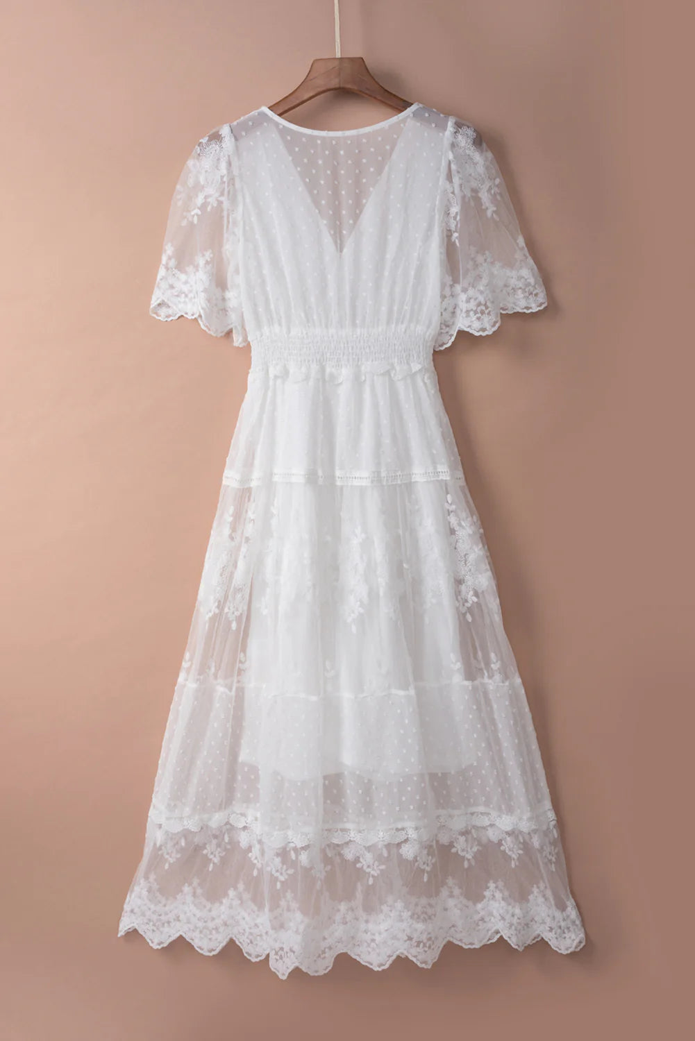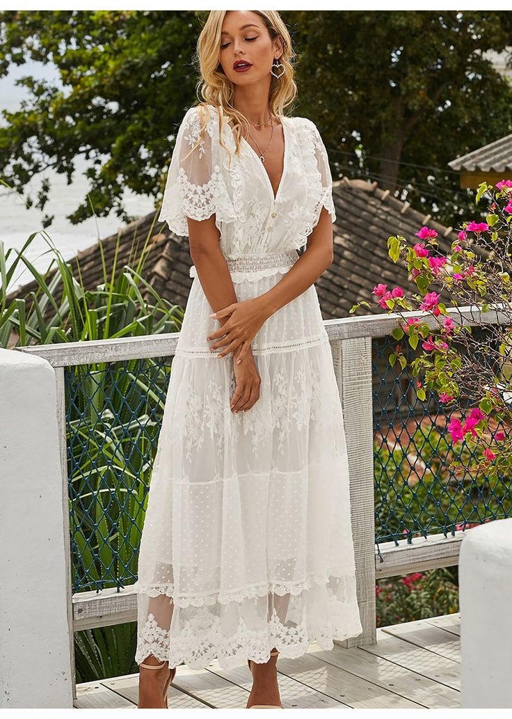 The intricate details of the lace add a touch of femininity, while the white color creates a timeless and versatile look. Perfect for any special occasion or a night out, this dress is a must-have in your wardrobe.
