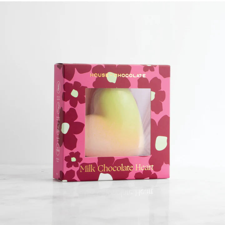 Hazelnut Praline & Salted Caramel Milk Chocolate Heart ❤︎ Melt their heart with our delicious milk Chocolate Heart. Crafted from 37% cacao couverture dark chocolate and filled with crunchy hazelnut chunks, house made hazelnut praline & salted caramel.