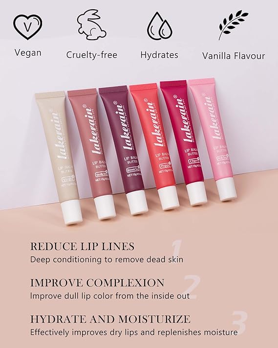 Our Lakerain lip butter balm is cruelty-free, paraben-free, vegan, gluten-free, fragrance-free, and non-toxic. It contains butters that naturally moisturize, soothe, and condition dry lips, adds a long-lasting, lustrous, lacquer-like gloss finish for beautiful, dewy lips. A unique blend of vegan waxes softens lips and provides a subtle shine without any tackiness. With a sweet hint of natural vanilla.
