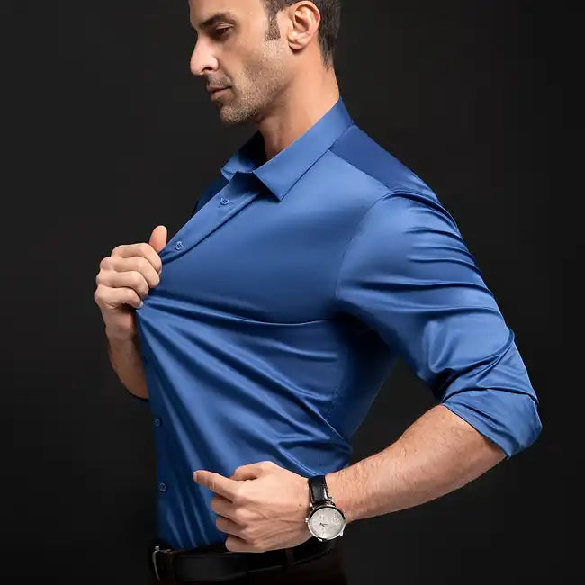 Move Freely with Our Ice Silk Ultra Flexible Business Shirts Enhance your wardrobe with our Ice Silk Ultra Flexible Business Shirts. Its stretchy Ice Silk Fabric allows for maximum mobility, ensuring you stay comfortable whether you're at work or out for a night on the town.