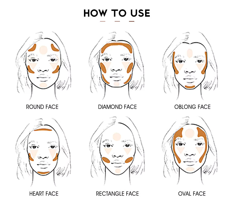 How to use Apply highlight stick on cheekbones, middle of forehead, under eyes, down the center of your nose, on the brow bone and along the jawline. Apply contour stick to top of forehead and along hairline, under cheekbones and down both sides of your nose and under the jawline and chin. Use your finger or makeup puff BLEND, BLEND, BLEND!