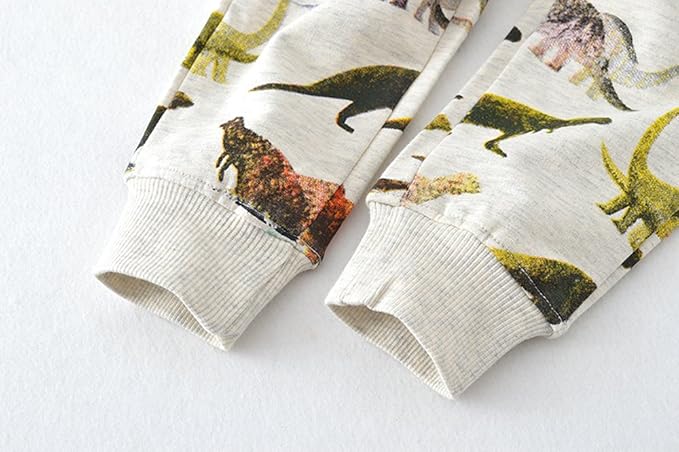 These fun kids pants feature repeating patterns of dinosaurs. The comfortable cotton pants have a drawstring and/or elastic waistband for super comfort and a good fit. These comfy pants are great for a day of active play, school, outings, or just a laid-back day at home. They're perfect for little ones who love dinosaurs!