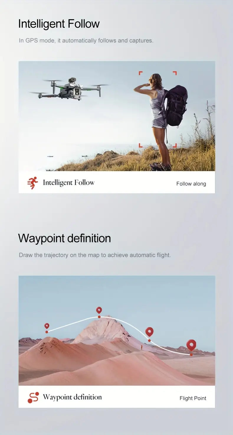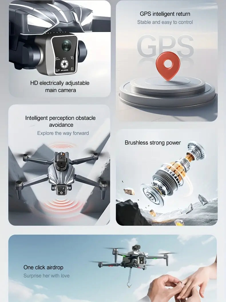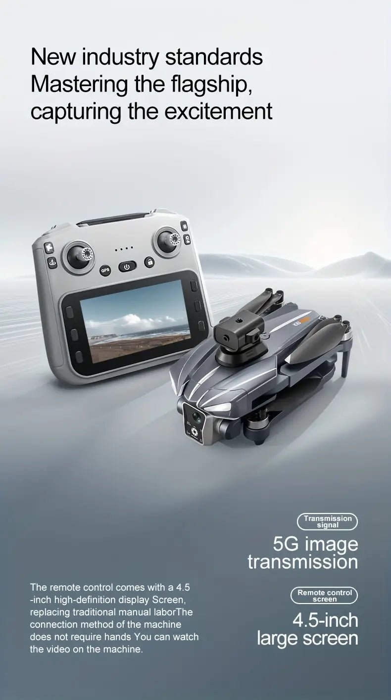 K18MAX drone with a 4.5-inch display and integrated GPS for precise navigation. Powered by a brushless motor, it delivers extended flight duration alongside comprehensive 360° obstacle avoidance. Advanced functionalities include one-key return (RTH), 50x zoom, and 5G HD FPV live streaming. Its intelligent follow capability is tailored for vlogging, professional photography, and architectural surveying, offering consistently stable and high-quality aerial imagery. This sophisticated device is an excellent choice for those seeking a premium drone experience.