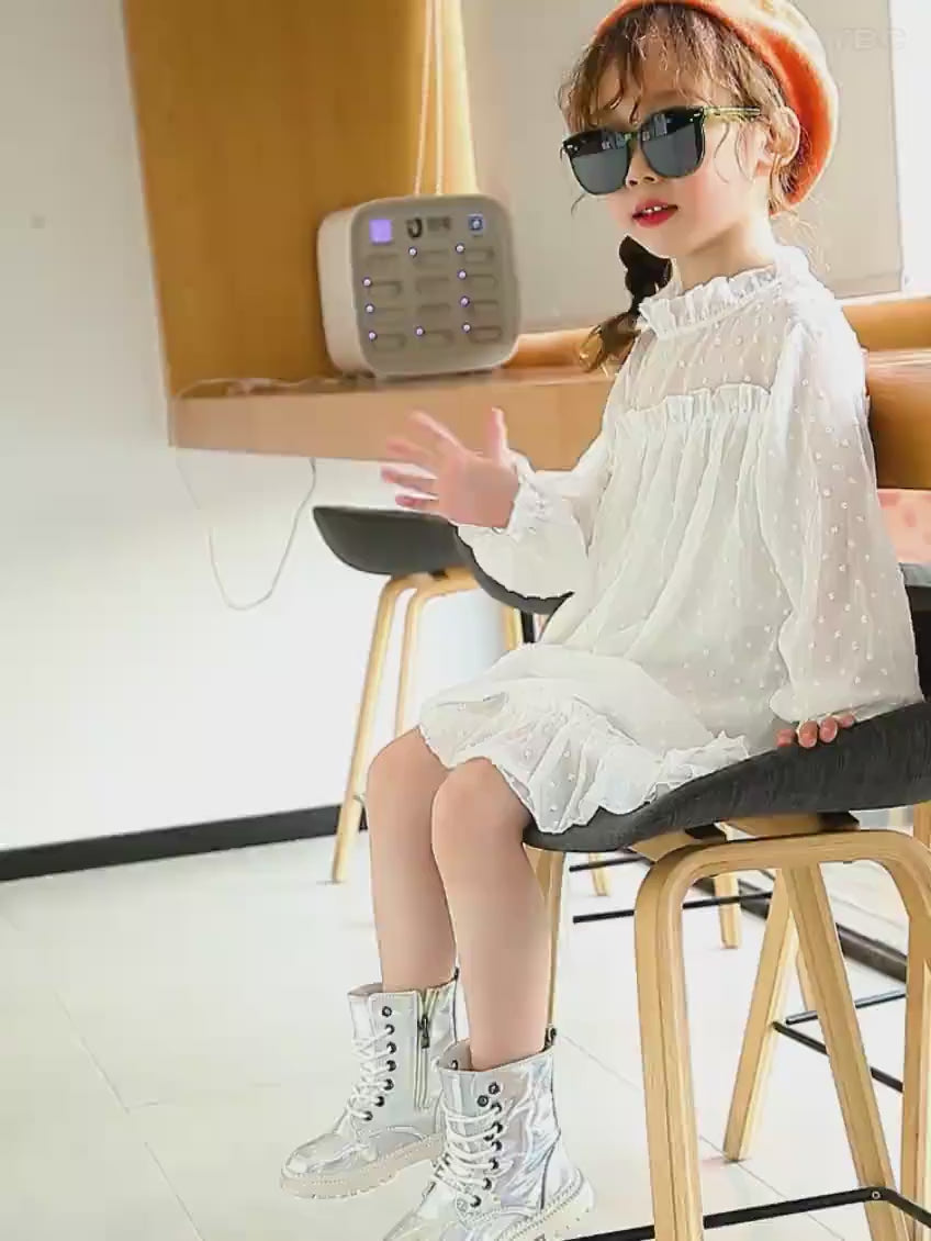Our Kids Butterfly Martin Boots are unisex, making them versatile for both boys and girls. The convenient zip closure and round toe shape make them easy to put on and take off, perfect for busy mornings or outdoor playdates. Say goodbye to cold feet with our girls' shoes, kids' boots, snow boots, and more, all designed to keep your child stylish and warm throughout the winter season.
