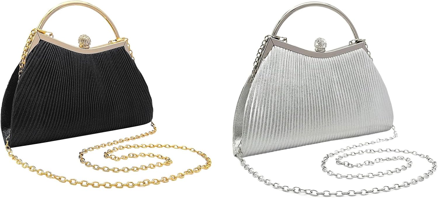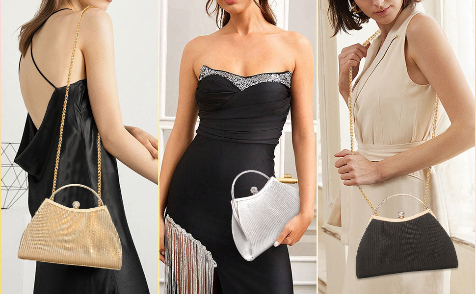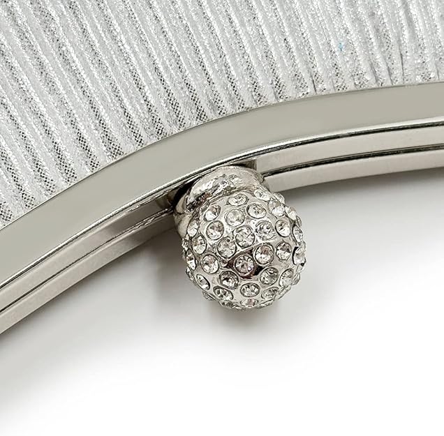 Sparkle and shine at your next special occasion with these dazzling satin or rhinestone metallic kiss lock clutches. Perfect for weddings, parties, proms, and elegant dinners, this glamorous evening bag adds instant sophistication to any outfit. The eye-catching crystal embellished kiss lock closures catches the light beautifully, while keeps your essentials secure in style. Whether you're celebrating a milestone or looking for the ideal gift for the woman who loves to dazzle, this showstopping clutch delivers pure elegance and fun.
