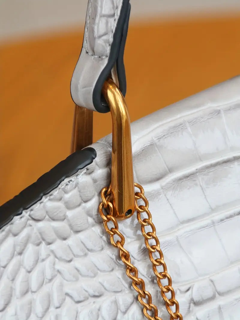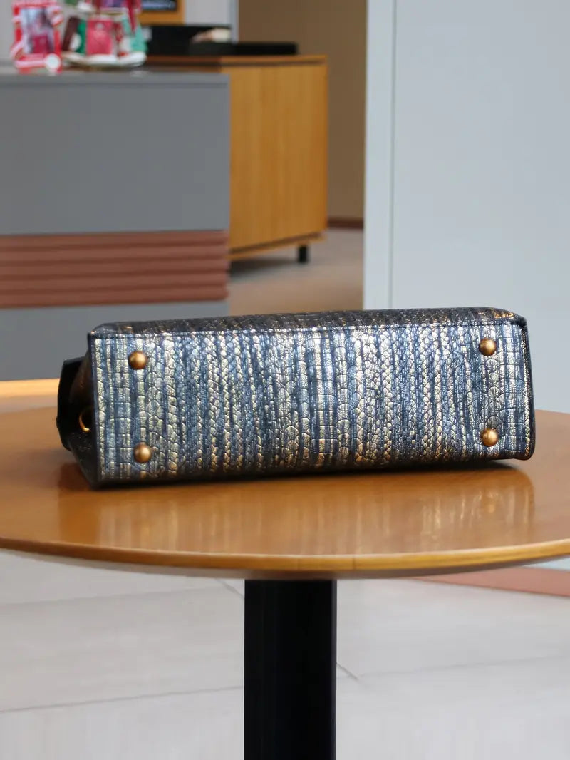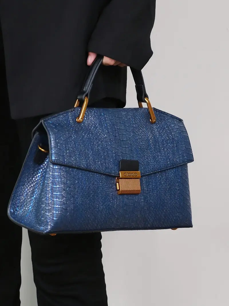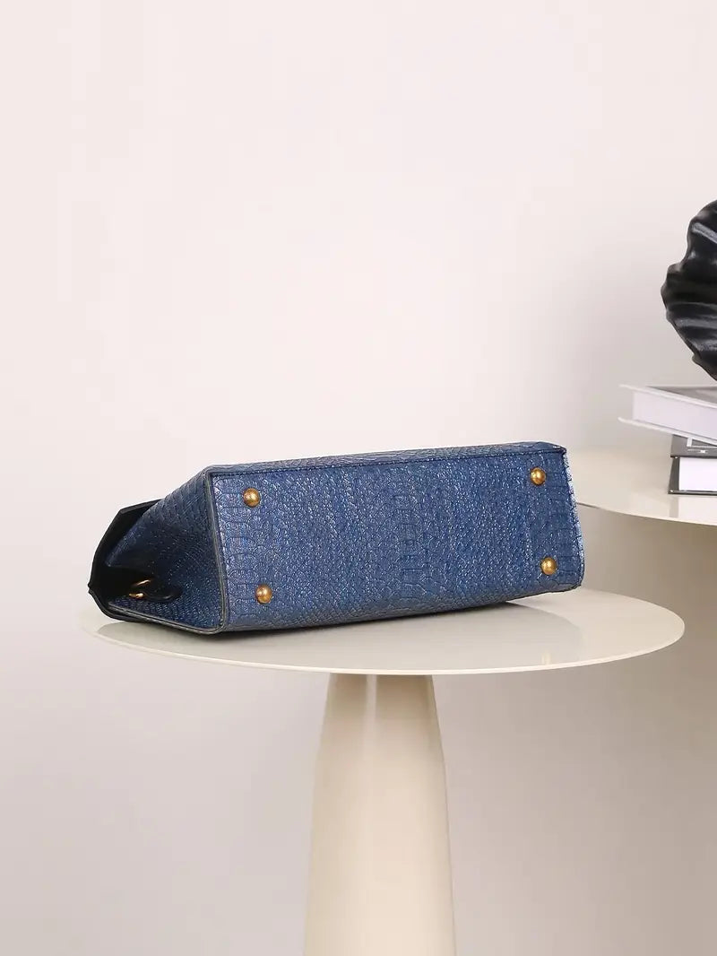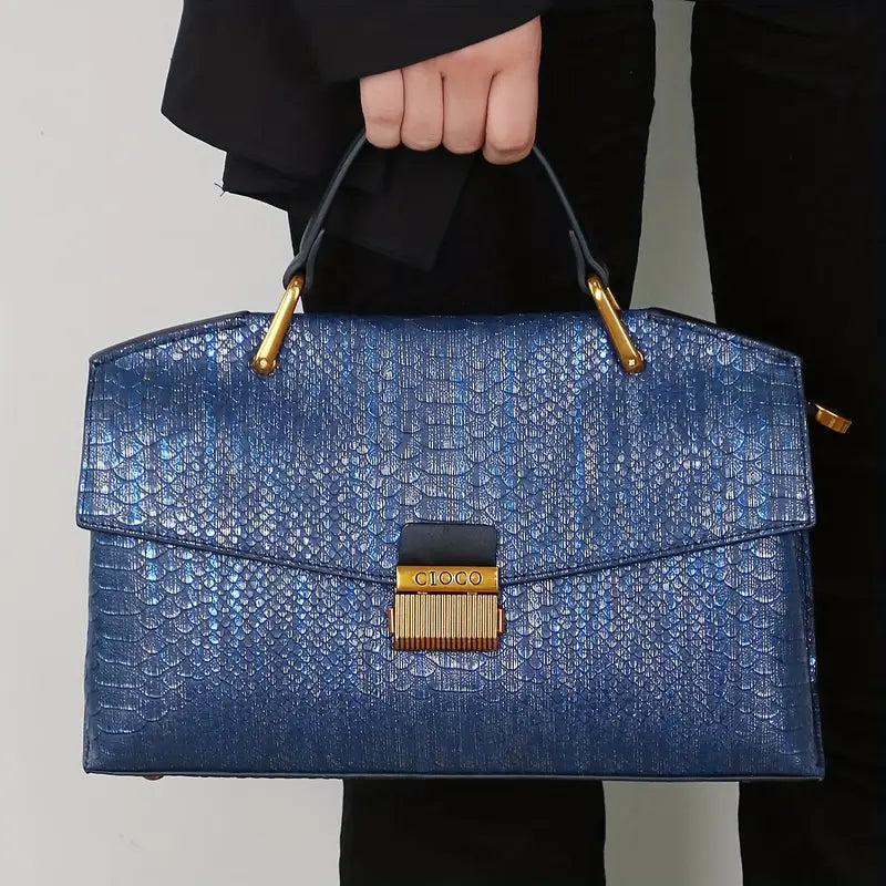 Experience the elegance of CIOCO Luxury Retro Snake Pattern Handbags. This stylish blue snake print handbag is new, trendy, and lightweight, offering roomy storage with a polyester lining. Featuring a chic kiss lock closure, it’s a durable and fashionable shoulder crossbody bag designed for women who value both style and practicality.