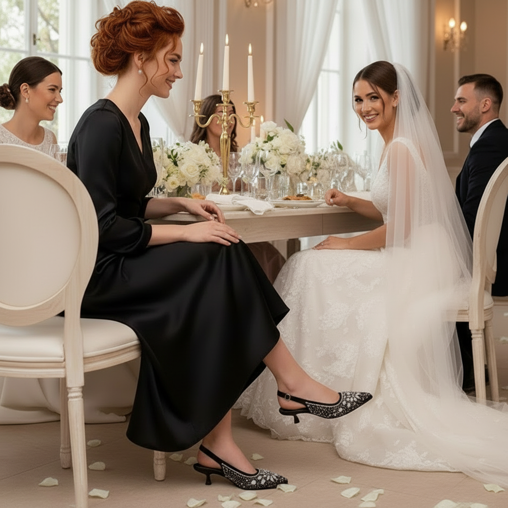 Step into sparkle with these dazzling rhinestone kitten heel sandals - your new go-to for any occasion. The pointed toe silhouette and supportive ankle strap keep you looking chic while feeling fabulous, whether you're conquering the office, hitting the shops, or dancing through parties. Rhinestones catch the light beautifully, adding just the right amount of glamour without the sky-high commitment. Comfortable enough for all-day wear, these versatile heels prove you don't have to sacrifice style for practicality.