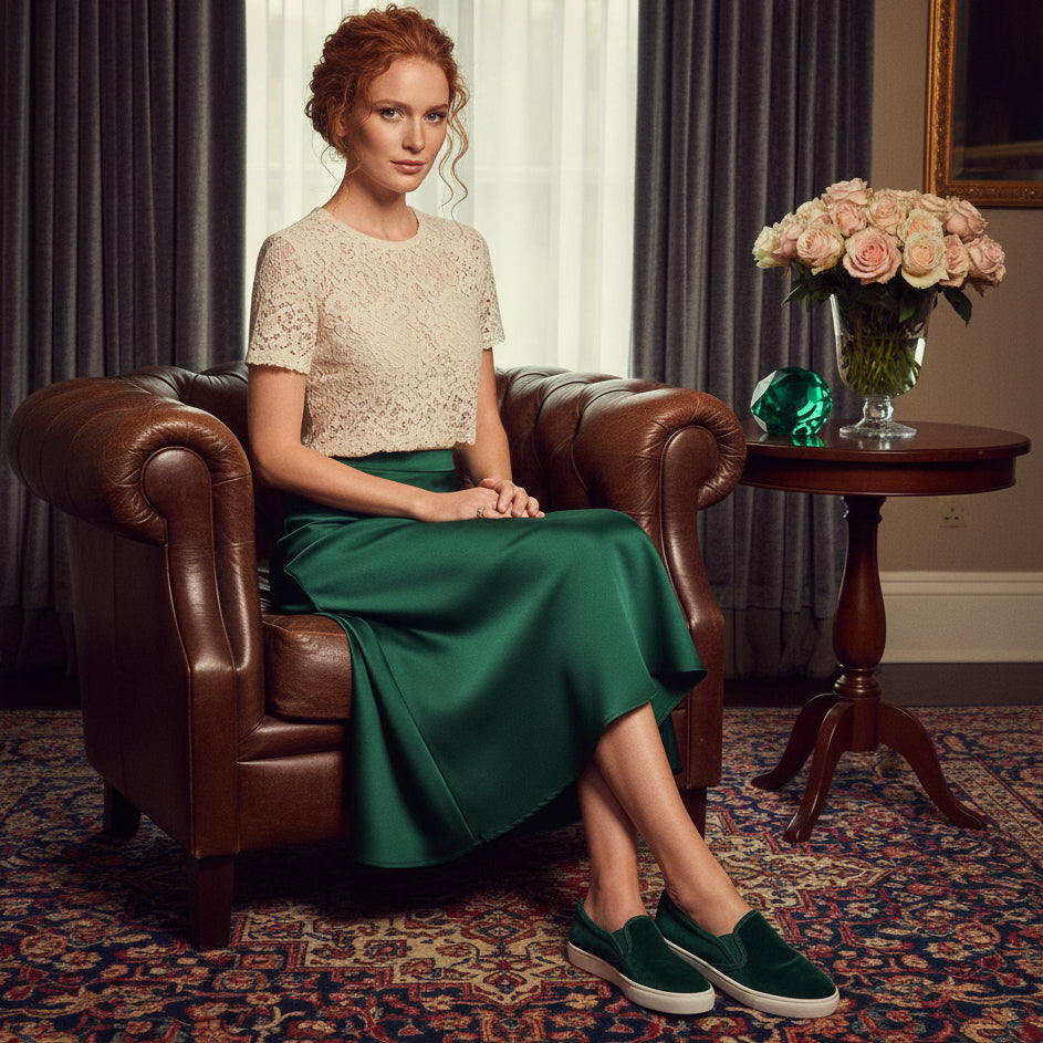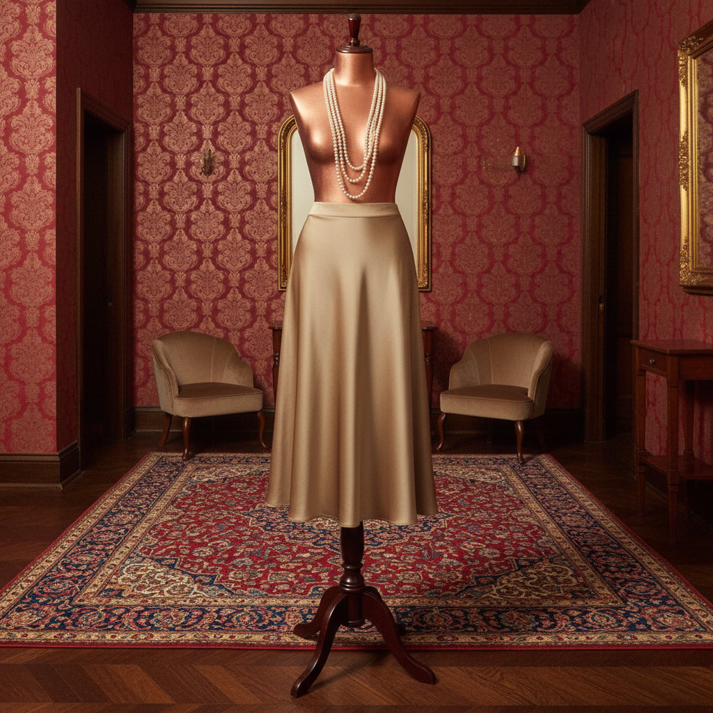 Experience refined elegance with this exquisite satin A-line skirt, designed to elevate your wardrobe with understated sophistication. The sumptuous polyester fabric falls gracefully, creating a flattering silhouette that exudes timeless charm. Select from four distinguished hues Midnight Black for classic poise, Old Gold for warm richness, Emerald Green for jewel-toned allure, or Champagne for subtle luminosity. Perfect for occasions demanding polish and grace, this skirt embodies the essence of cultivated style.