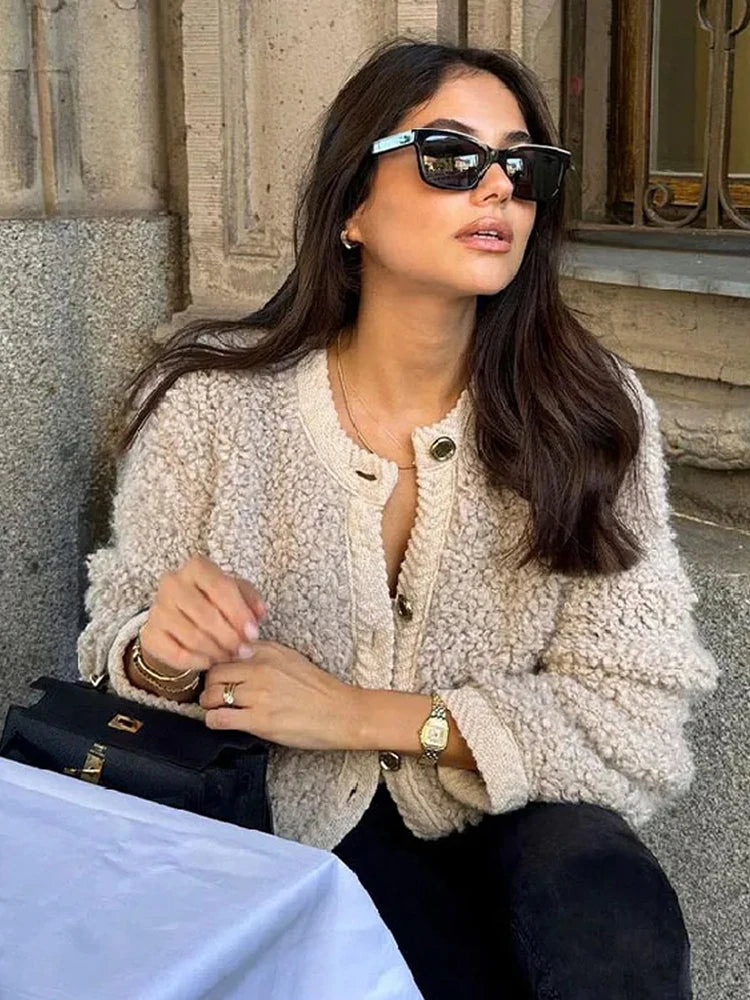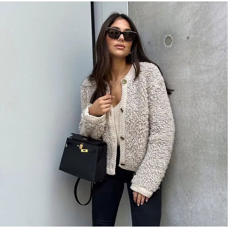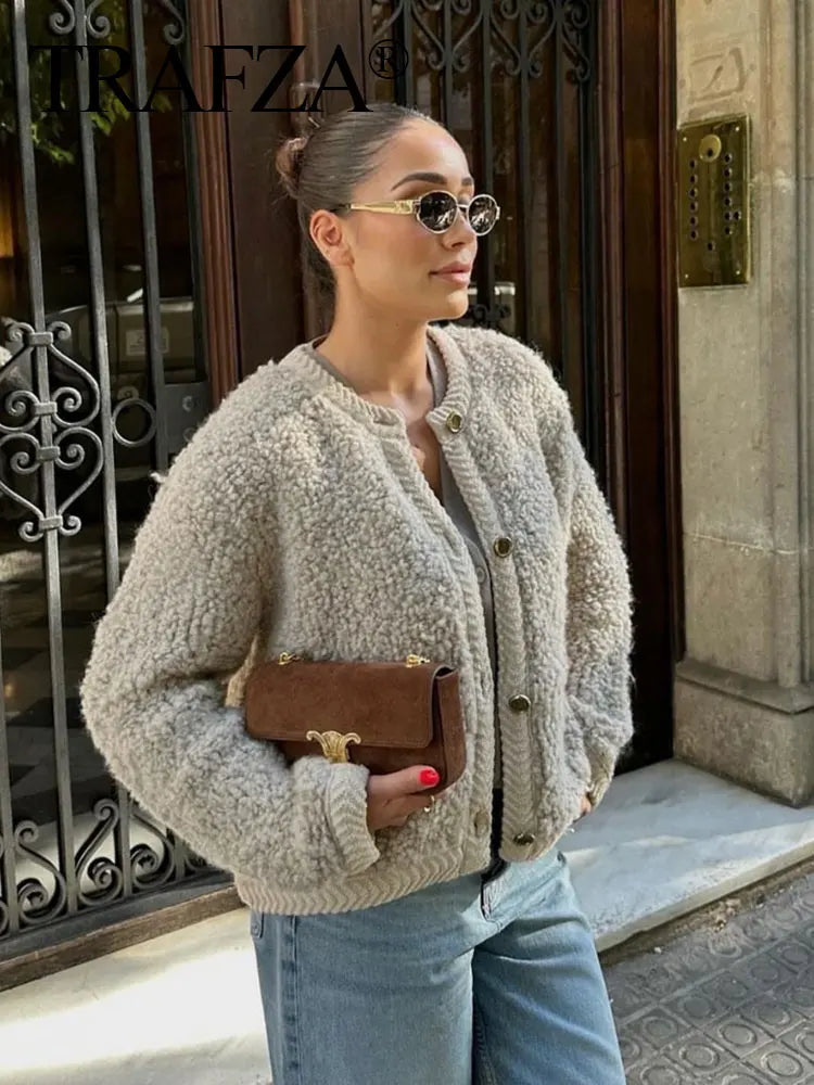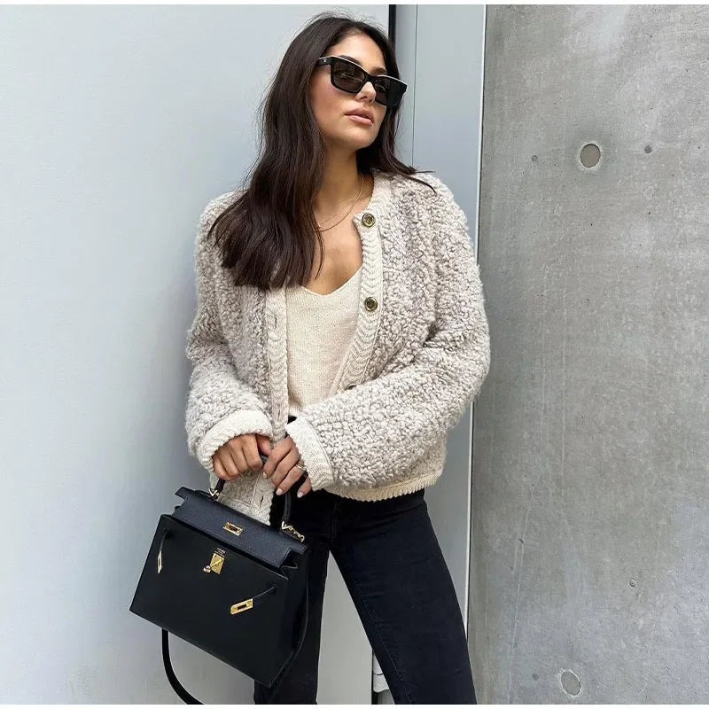 Stay Cozy and Chic This Winter Wrap yourself in warmth and elegance with our lamb wool O-neck long sleeve coat. Perfect for any cold-weather occasion, this coat ensures you stay stylish while keeping the chill at bay.