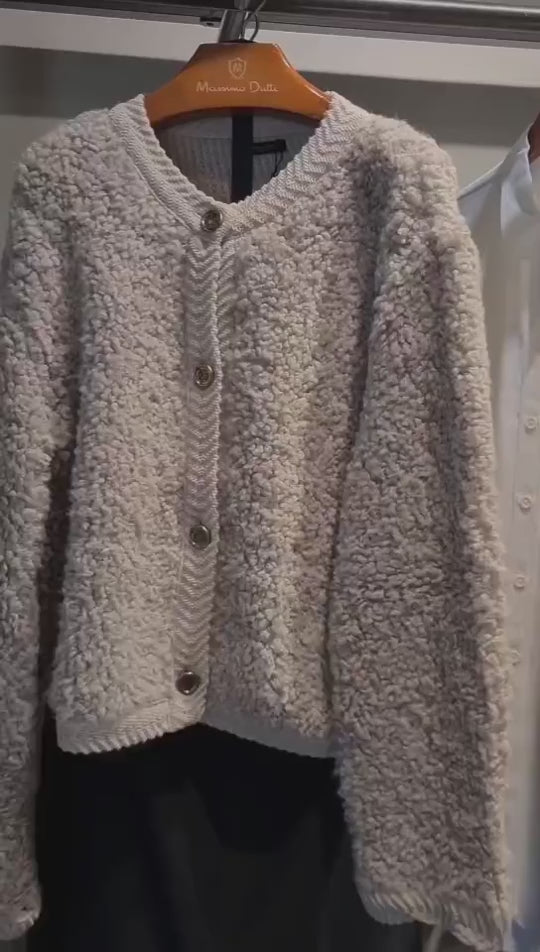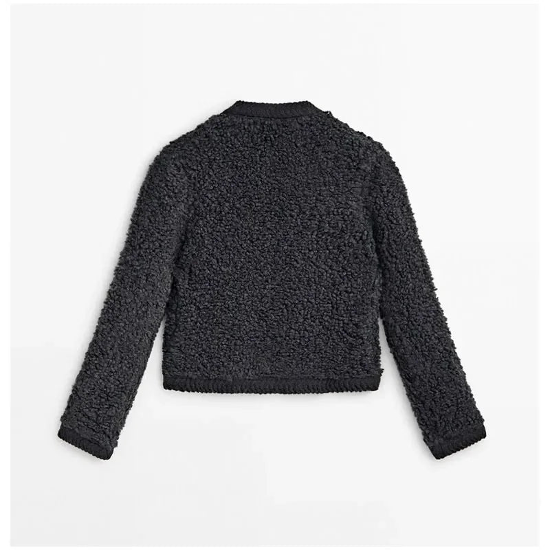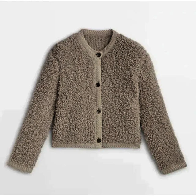 Lamb Wool O-Neck Long Sleeve Coat