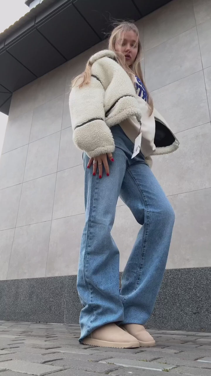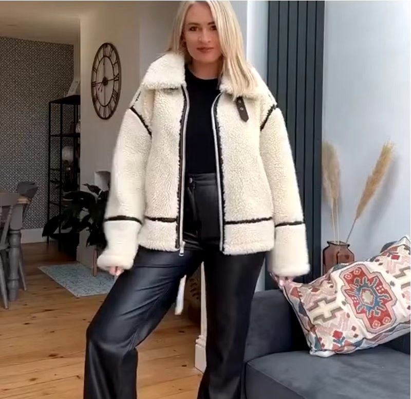 This stylish loose-fit Borg Sherpa Fleece Patchwork Jacket features a trendy patchwork design made from soft polyester fleece and is fully lined. Perfect for easy pairing with any outfit, it offers warmth and comfort while keeping you effortlessly chic. Ideal for layering in cooler weather!