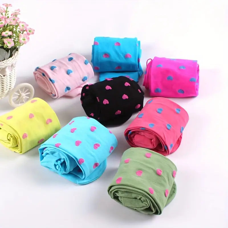 Adorable Heart Dot Design: The pantyhose are adorned with sweet, heart-shaped dots that add a fun and whimsical touch to any outfit. A perfect choice for young girls who love a little extra flair in their fashion.