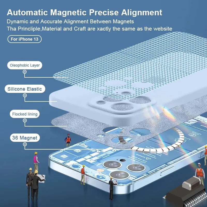 Featuring a sleek magnetic design and premium liquid silicone material, our case offers unparalleled convenience and security. The embedded metal plate allows for effortless wireless charging, eliminating the hassle of tangled wires and cables. Plus, the advanced liquid silicone provides a soft yet durable layer of protection, shielding your iPhone from dirt, dust, drops, and scratches while maintaining its slim profile and original beauty.