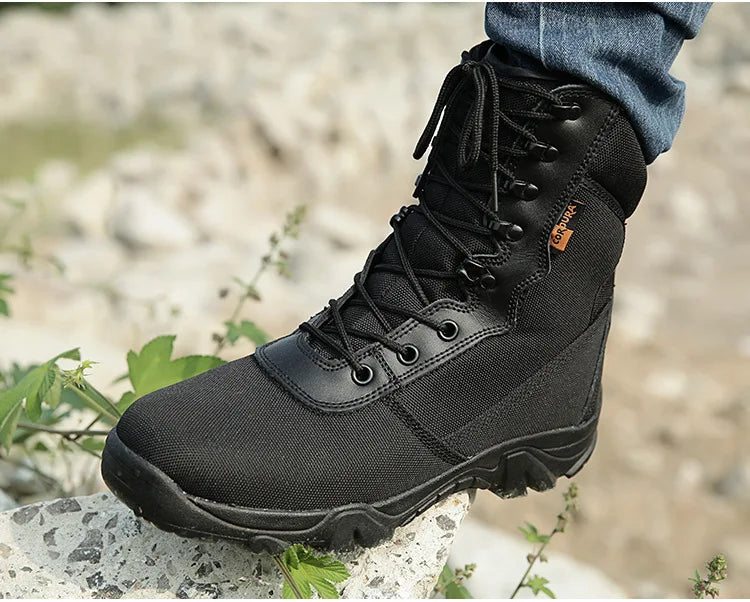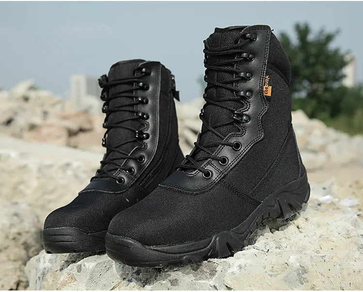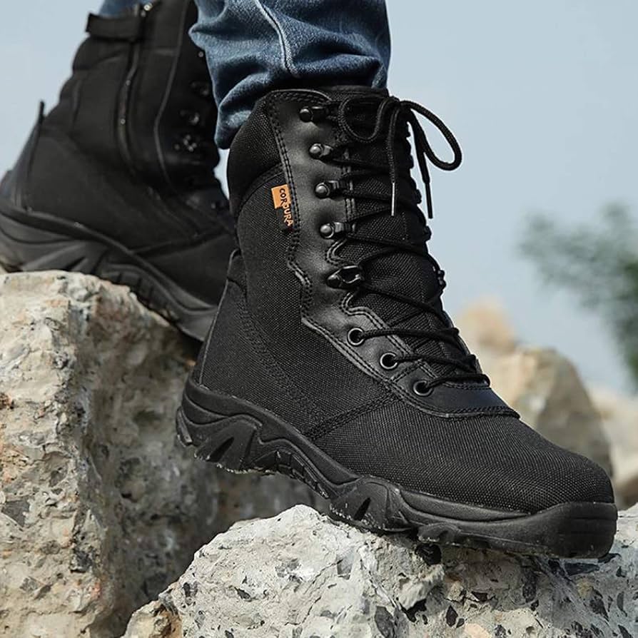 Step up your adventure with the Magnum Black Tactical Boots, designed for the modern man who values both style and functionality. These boots are crafted from a durable canvas material and feature a robust rubber outsole, ensuring that you have the grip and support you need for any terrain.