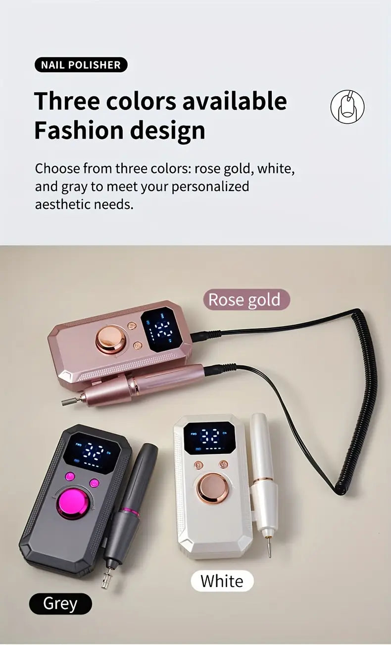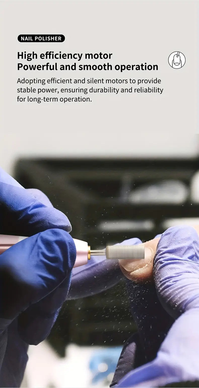 Transform your nail care routine with this versatile electric nail shaping and polishing system. Featuring 32 customizable speed settings, it adapts to your unique needs whether you're refining delicate fingernails or tackling tougher toenails. The rechargeable USB design means salon-quality results whenever you want them - no appointments necessary. Complete with professional-grade file and pusher stick attachments, this portable tool delivers the precision and control of a salon visit from the comfort of home. Achieve beautifully shaped, polished nails with professional results every single time.