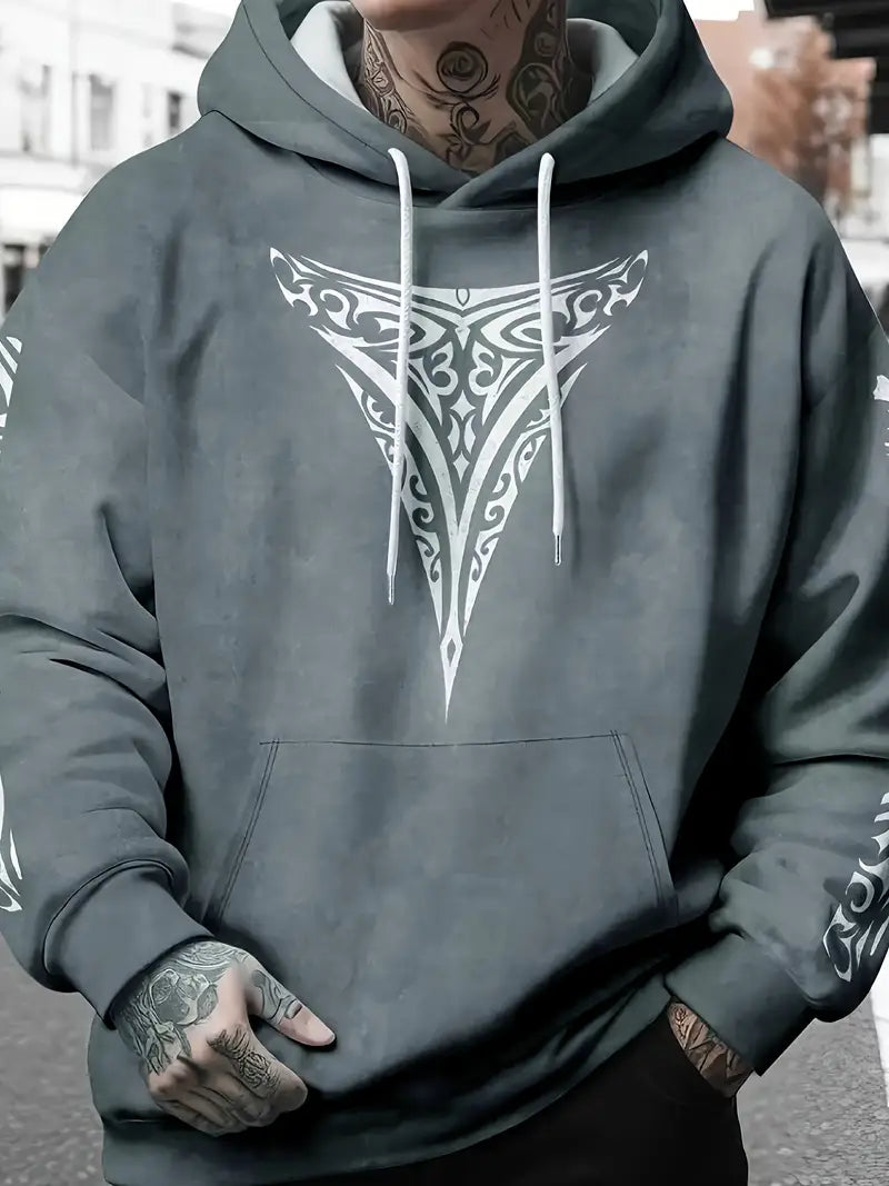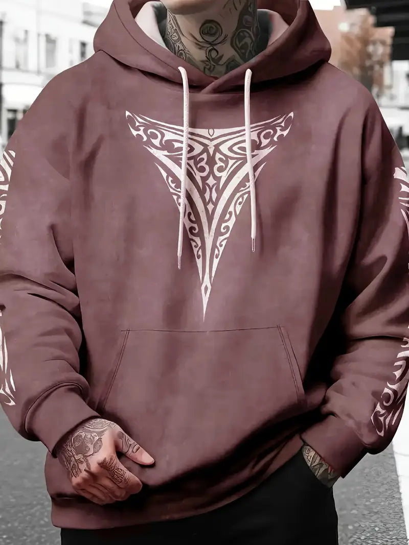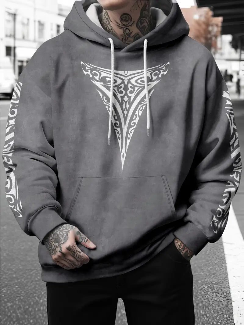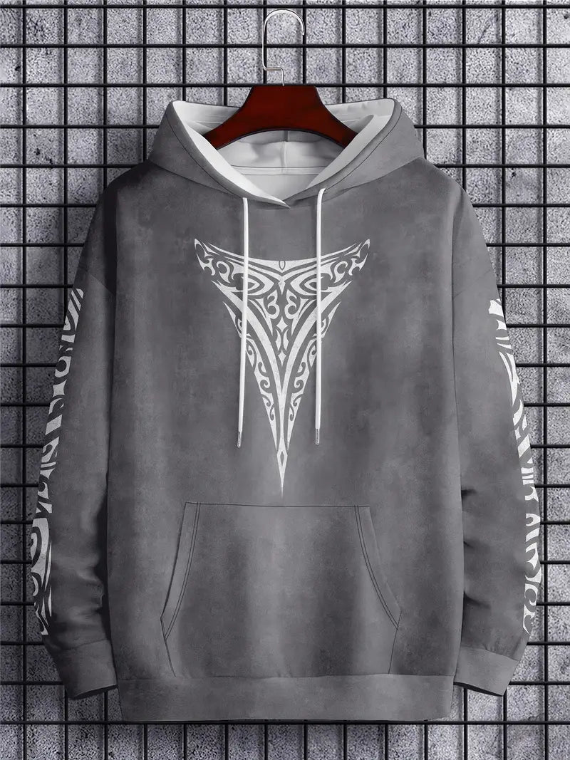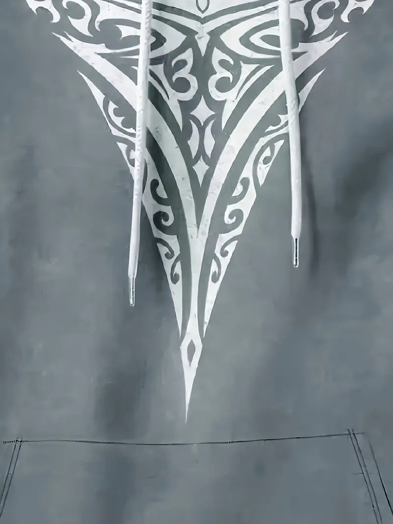 Make a fearless impression with this men's Maori Tribal Print Hooded Sweatshirt. Featuring bold white tribal designs and intricate shoulder patterns on a drop shoulder, long sleeve cut, this streetwear essential commands attention. Designed with a relaxed fit and available in plus sizes, it delivers uncompromising comfort and style for casual occasions and themed events. Machine washable and ready to elevate your look, this sweatshirt is a daring statement piece that refuses to blend into the background.
