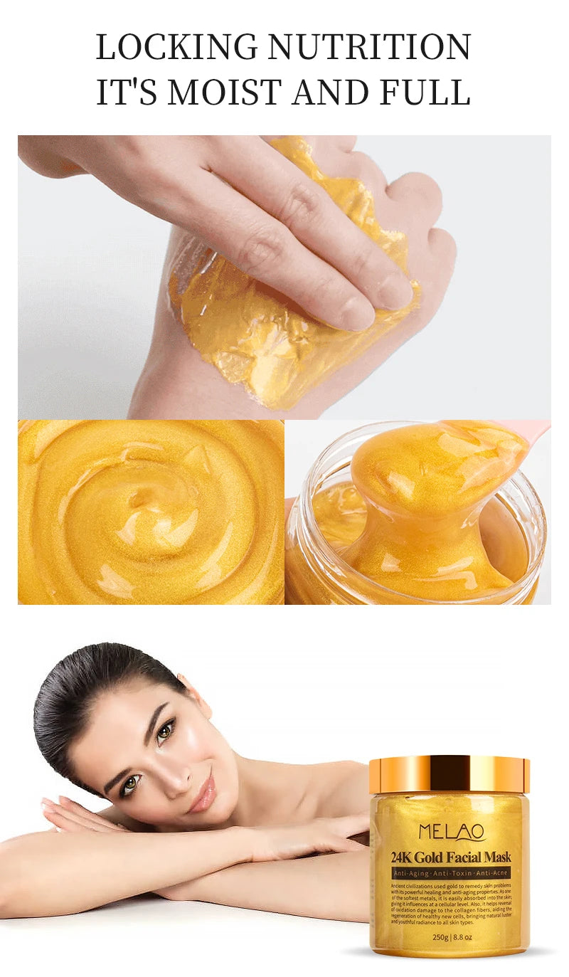 Indulge in the luxurious benefits of our 24K Gold Facial Collagen Mask, meticulously crafted to provide your skin with the ultimate rejuvenation experience. This remarkable Collagen face mask is designed to combat wrinkles, detoxify, and target acne, making it a must-have in your skincare routine.