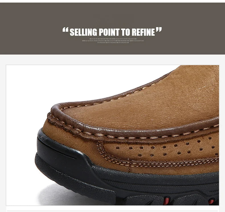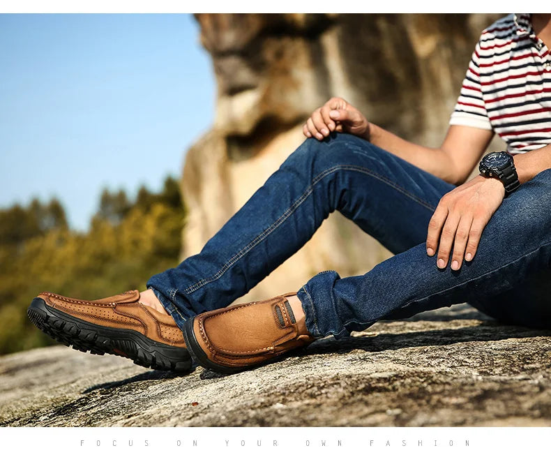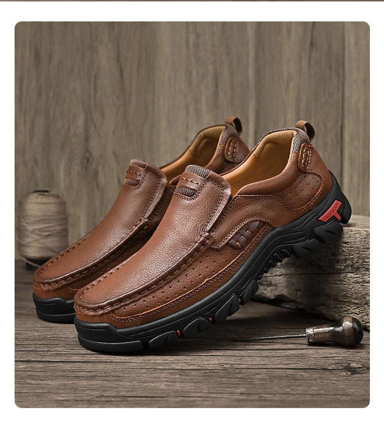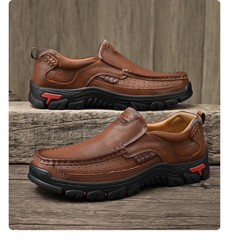 Experience the perfect blend of style and functionality with our Men's Outdoor Genuine Leather Slip-On Loafers – because every step should be a confident one!