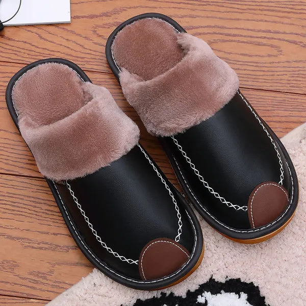 Stylish and Practical Design Embrace both style and functionality with these Men's Warm Vegan Leather House Slippers. Their sleek design complements any loungewear, while the durable sole ensures reliable traction indoors.
