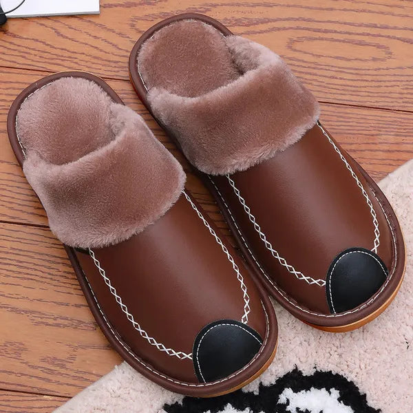 Cozy Comfort for You Step into luxury with our Men's Warm Leather House Slippers. Crafted from high-quality vegan leather, they provide unmatched warmth and comfort during chilly days and nights.