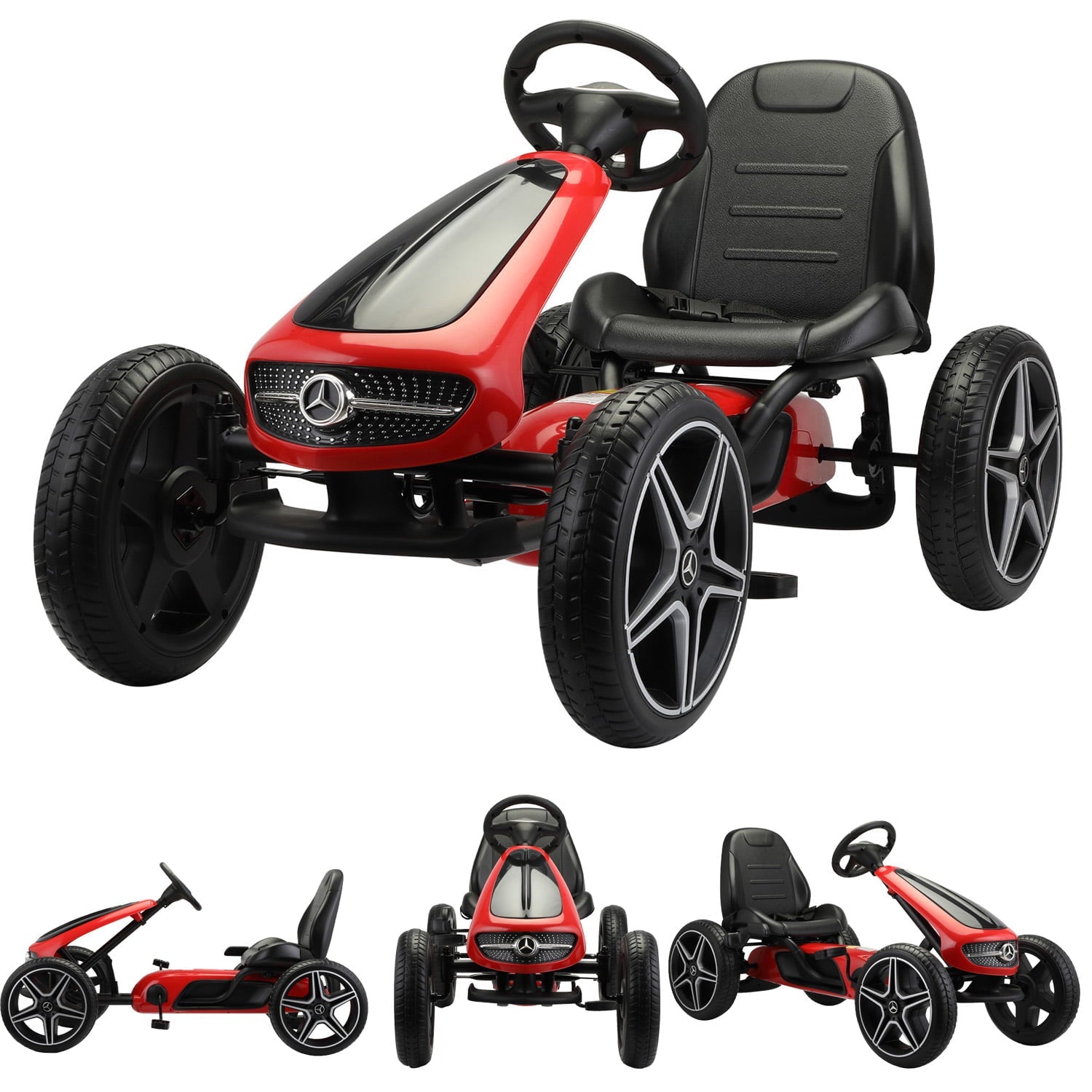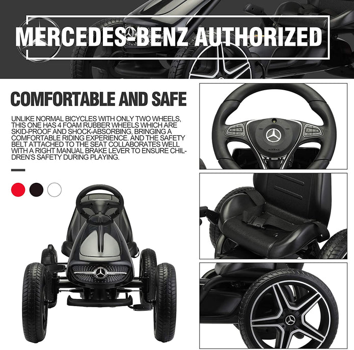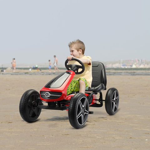 The ultimate riding experience for your children! The Mercedes-Benz Go-Kart is designed for both boys and girls, making it the perfect pedal-powered bicycle for your child. This four-wheeled beauty not only provides hours of fun but also promotes intellectual development and fitness.