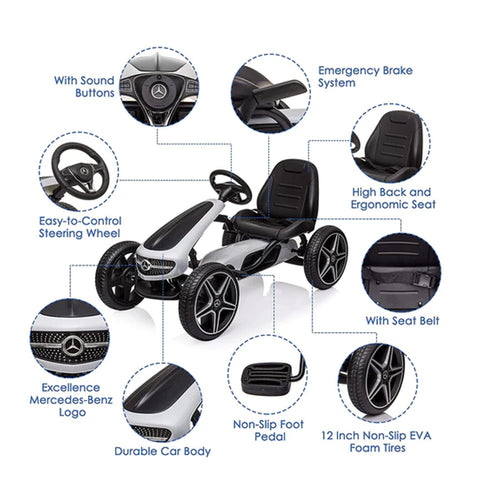 Enhance your child's playtime with the Mercedes-Benz Kids Go-Kart - a toy that combines fun, fitness, and style. Watch as they embark on countless adventures, all while developing their motor skills and confidence!