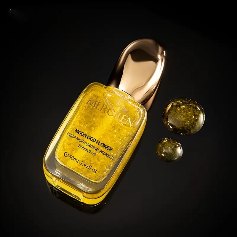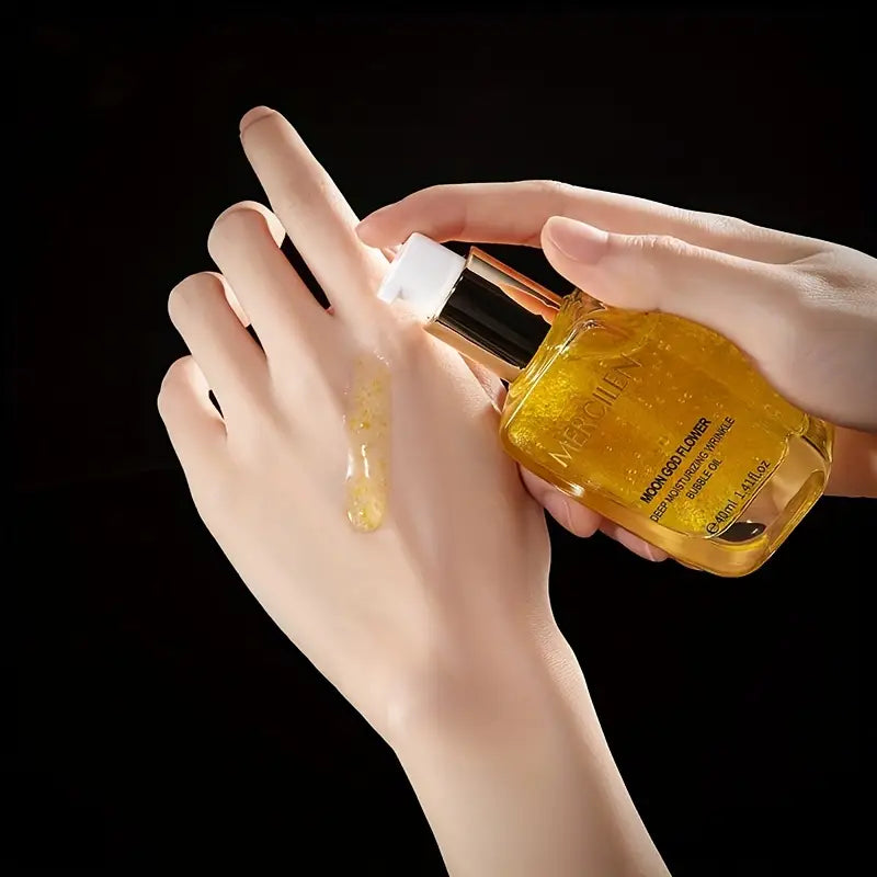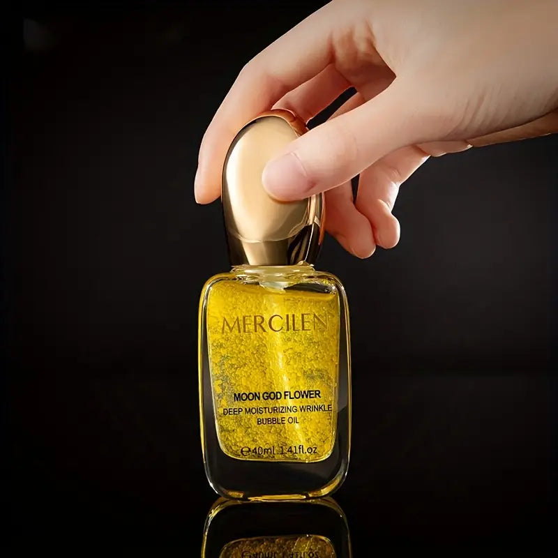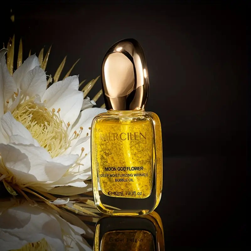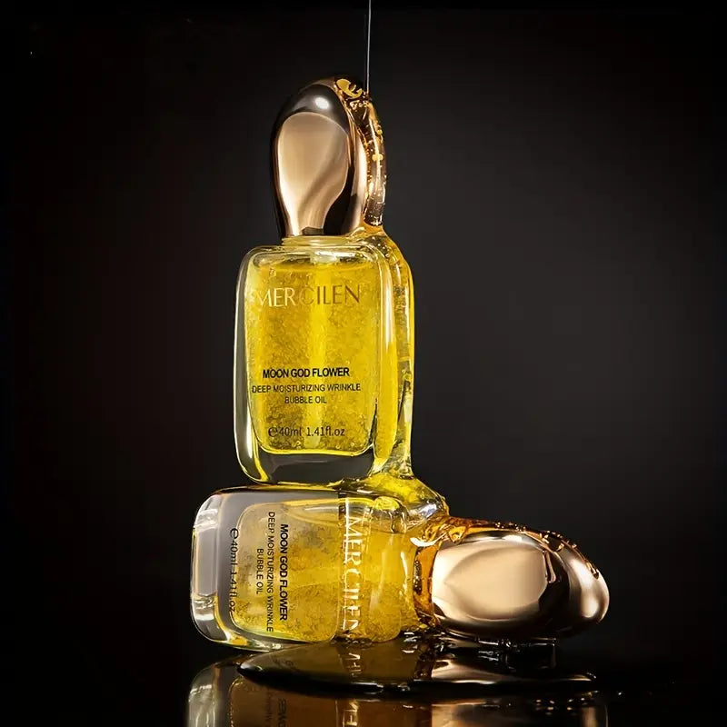 MERCILEN Moon God Flower Deep Moisturizing Bubble Oil enhances skincare with intense hydration and nourishment.