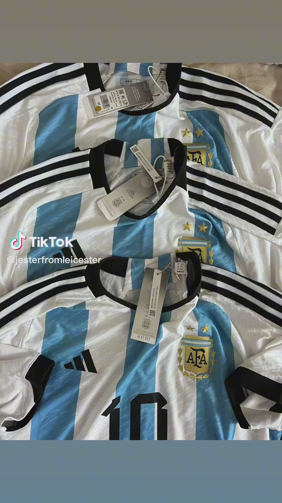 Crafted in the iconic white and blue stripes, this Argentina Football jersey is a must-have for any La Albiceleste fan.