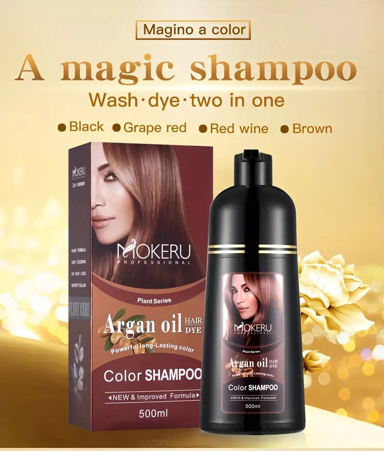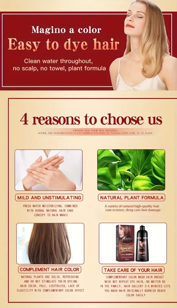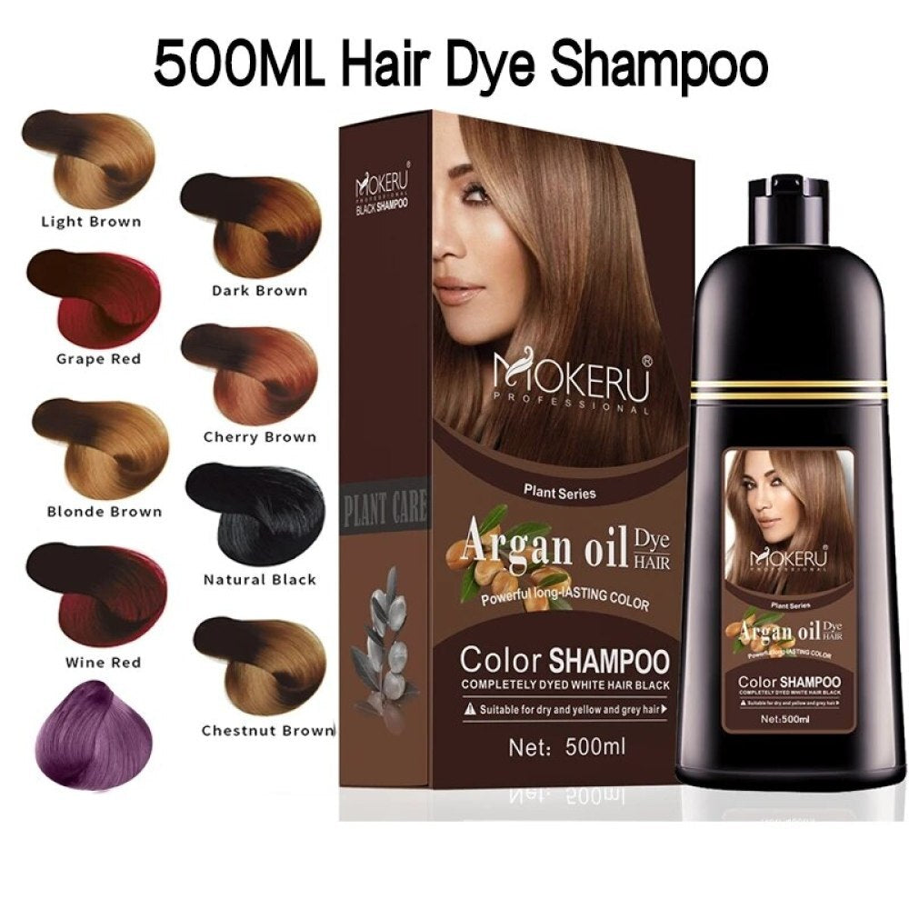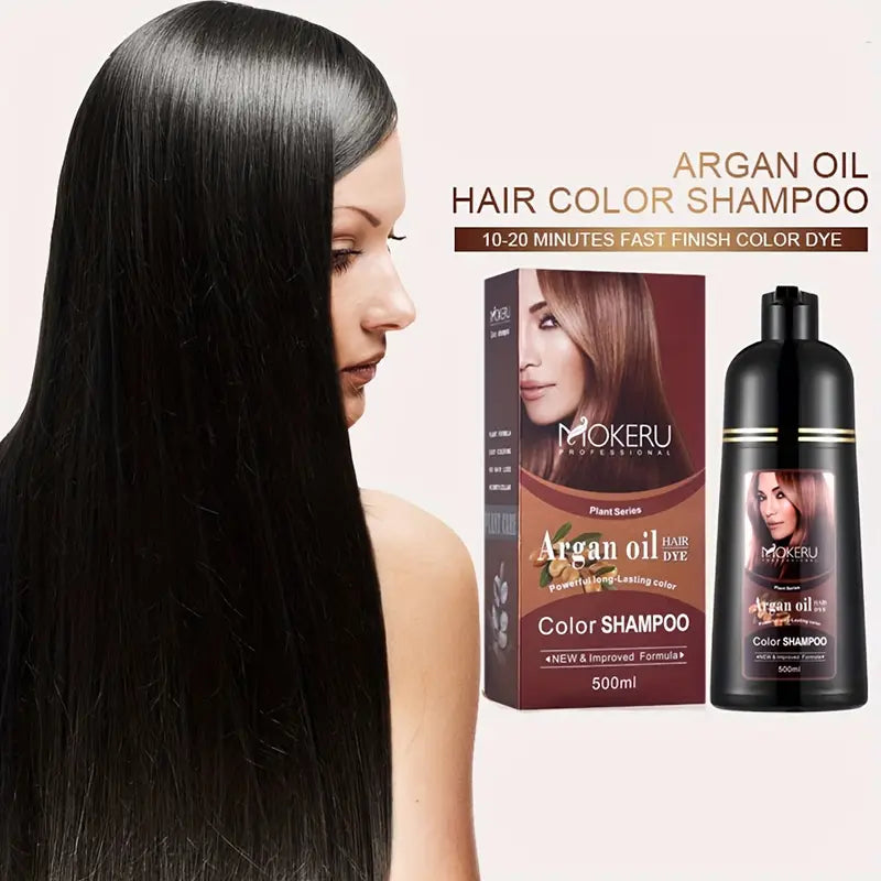 MOKERU Argan Oil Hair Color Shampoo, combines natural plant pigments to gently color your hair without harming your hair and scalp. It effectively covers gray hair fast, making it an essential summer product for everyone, men and women alike.