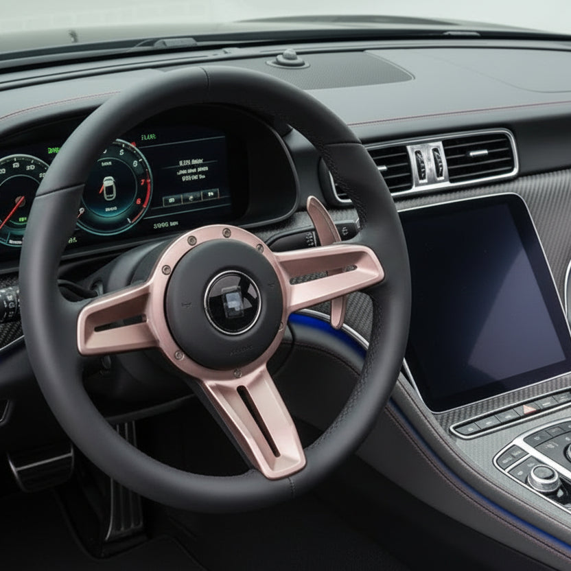 The sleek black leather finish adds a touch of sophistication while the titanium accents give it a modern edge. Whether you're on the track or cruising through the city, this steering wheel makes a statement.