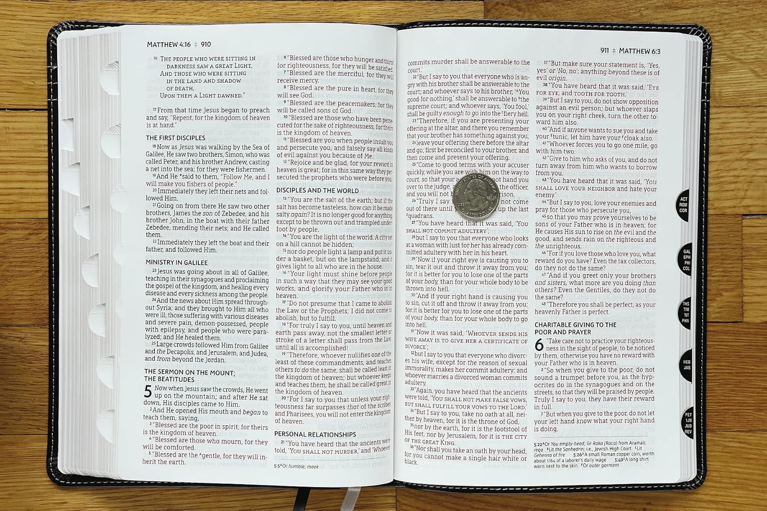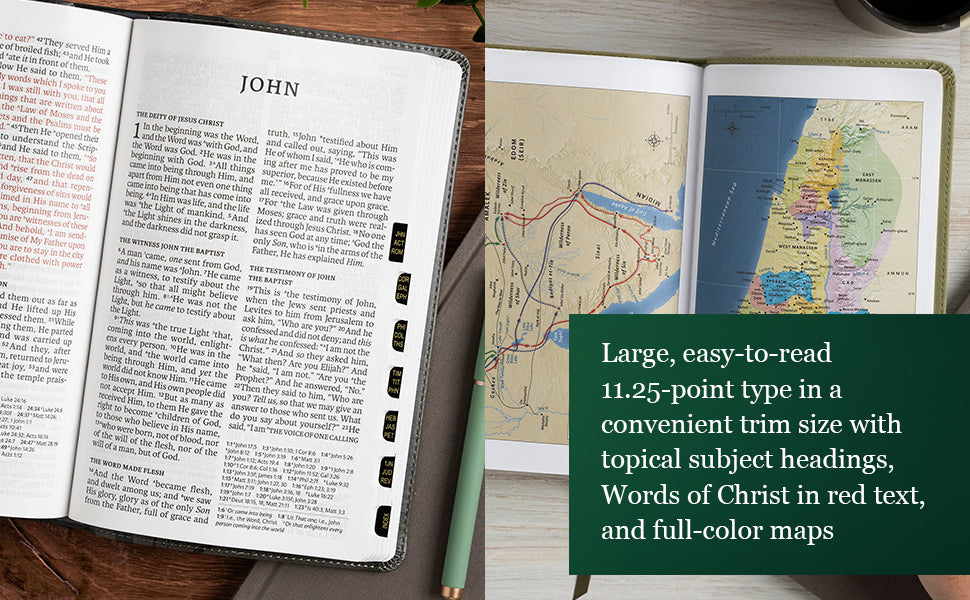 The NASB Large Print Personal Size Reference Bible features large, easy-to-read 11.25-point type in a convenient trim size that is perfect for devotional reading, personal study, or use at church. The large print type also makes this Bible an ideal choice for ministry and preaching.