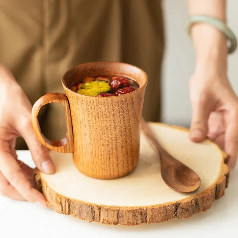 These elegant Natural Cherry Wood Mugs offers durable, reusable drinkware. Its versatile design, inspired by Japanese aesthetics, suits a variety of uses, combining functionality with refined craftsmanship. Hand wash only.