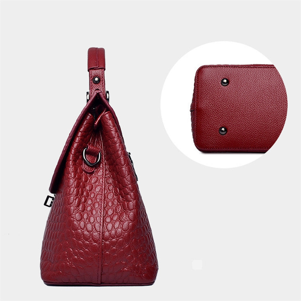Elevate your accessory collection with this New European-inspired leather crossbody handbag. Crafted from premium genuine leather, its sophisticated crocodile texture adds a touch of luxury to any outfit. Designed with a spacious interior, it easily accommodates your daily essentials, keeping you organized without sacrificing style. Perfect for women who seek a harmonious blend of practicality and elegance, this handbag transitions seamlessly from day to night, making it an indispensable addition to your wardrobe.