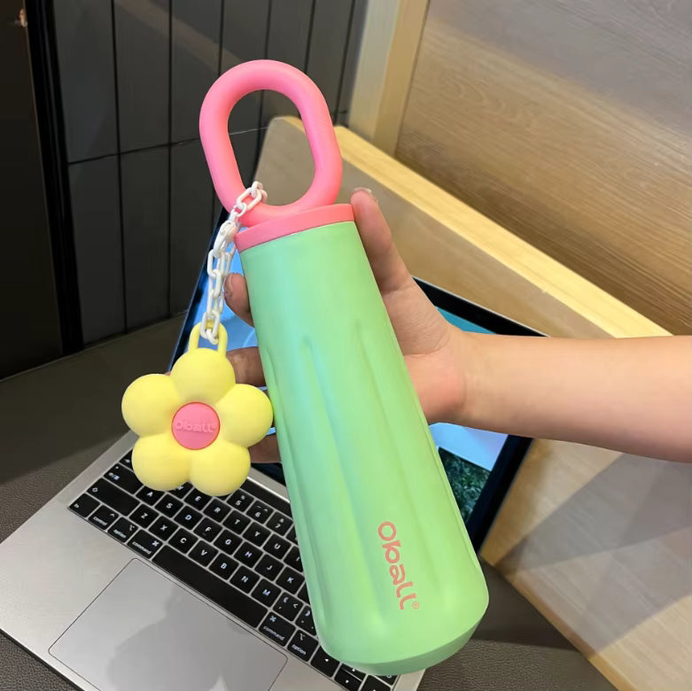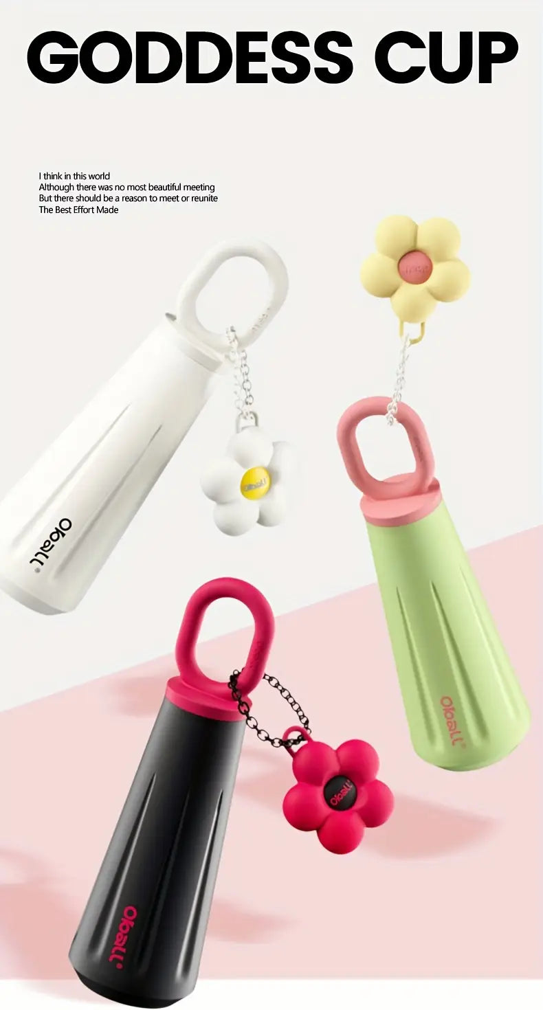 The OBALL Durable 316 Stainless Steel Water Bottle features a leakproof design and a convenient handle with a charming daisy flower accent. Made from BPA-free materials, it’s perfect for School, work, the gym, outdoor adventures, camping, and travel. Its sleek shape fits comfortably in car cup holders, keeping you hydrated on the go. Combining style with practical insulation, this water bottle is a dependable choice for any active lifestyle.