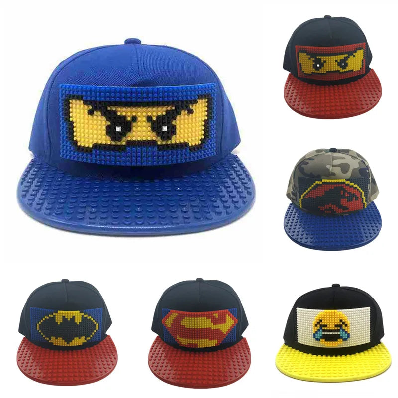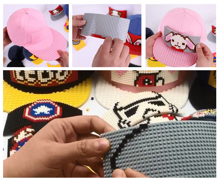 Unleash your creativity with our customizable DIY Lego hats. Designed for both kids and adults, these stylish baseball caps feature a unique system that lets you build and personalize your hat using LEGO bricks.