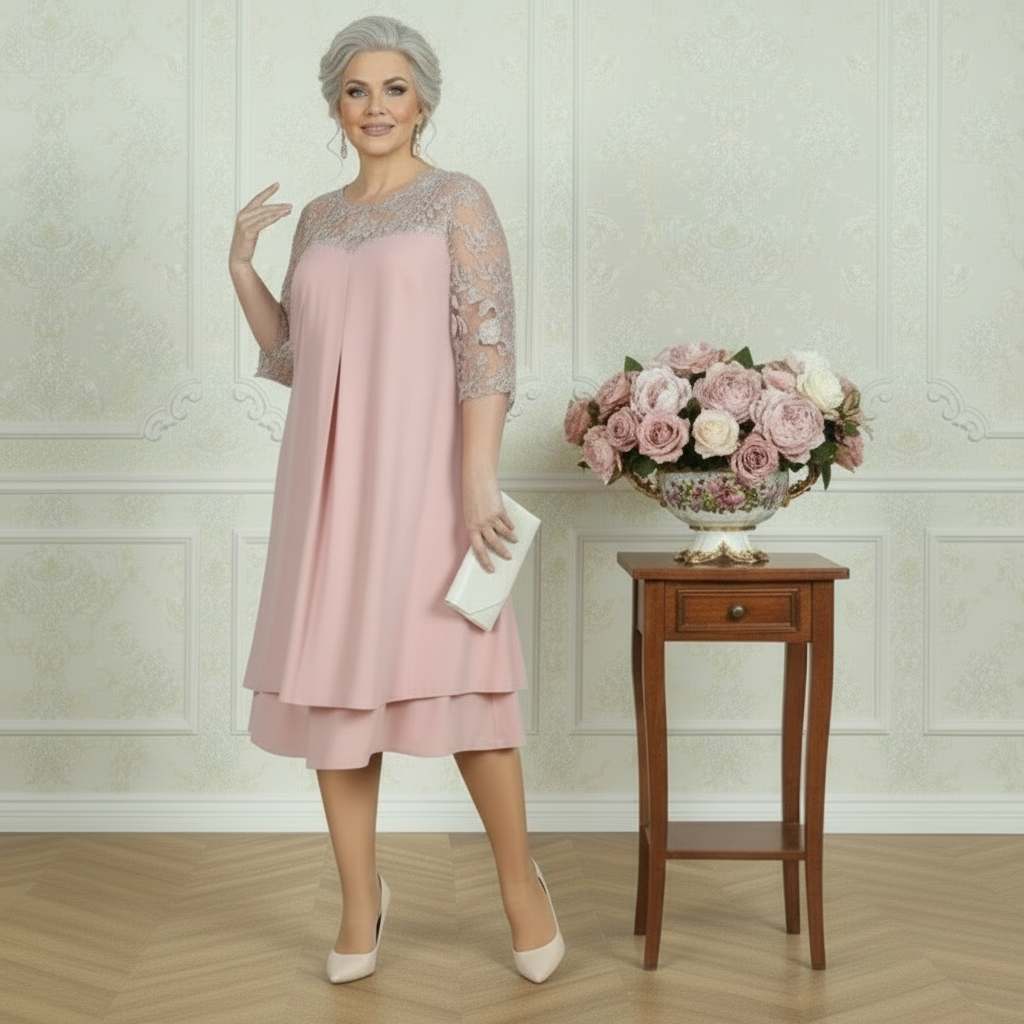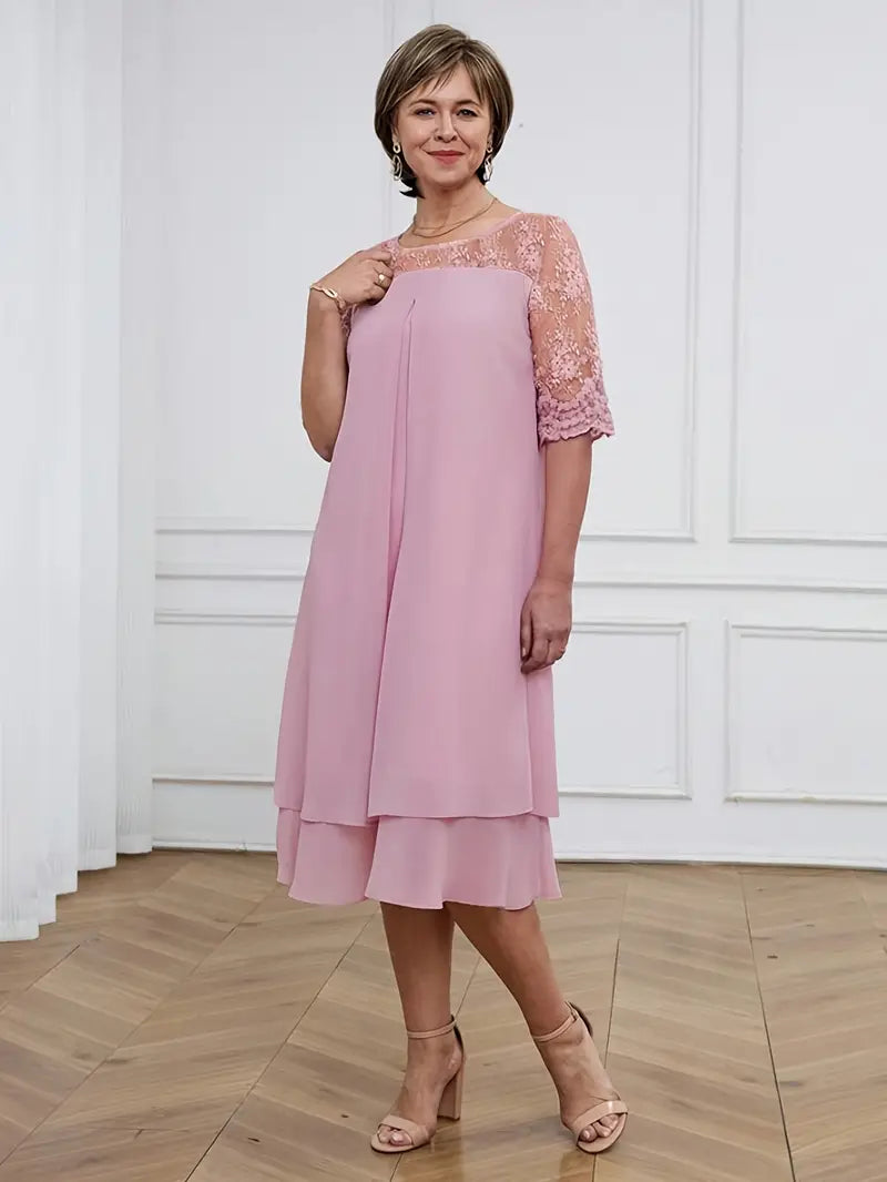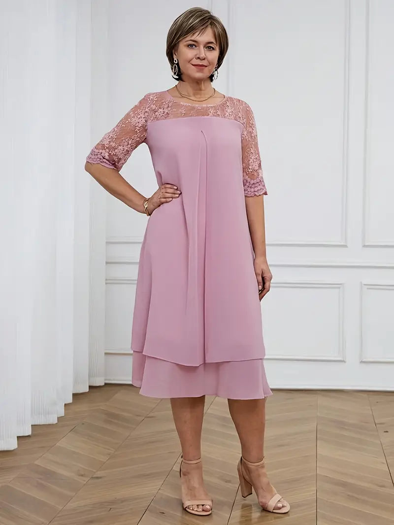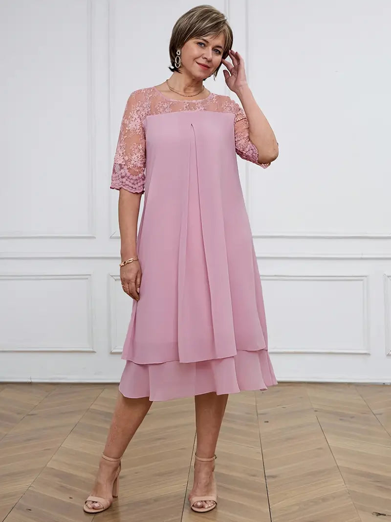 Discover the perfect blend of style and comfort with this elegant plus size chiffon midi dress. Featuring exquisite embroidery, half sleeves, and a classic crew neckline, its knee-length design makes it an ideal choice for any special occasion. Elevate your wardrobe with this stunning dress today.