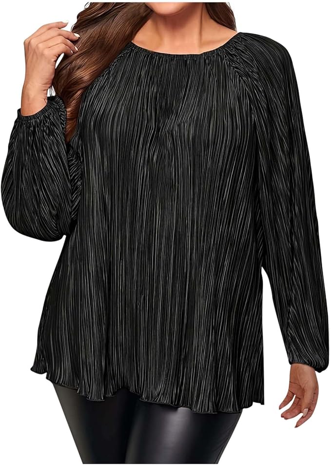 Experience comfort and style with these plus size tops featuring elegant lantern sleeves. Crafted from a soft fabric blend of 95% polyester and 5% spandex, they offer a flattering fit and breathable wear. The crew neck and solid color design make them a versatile addition to any wardrobe.