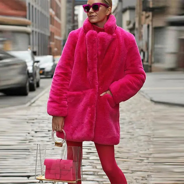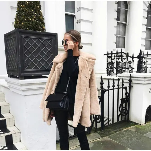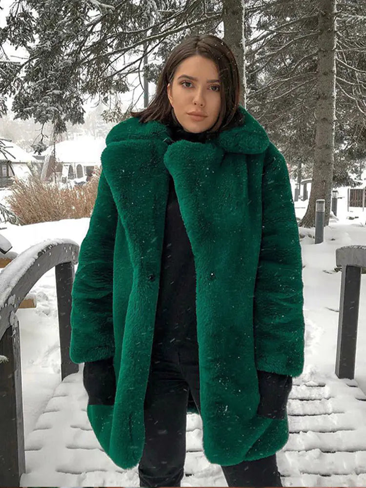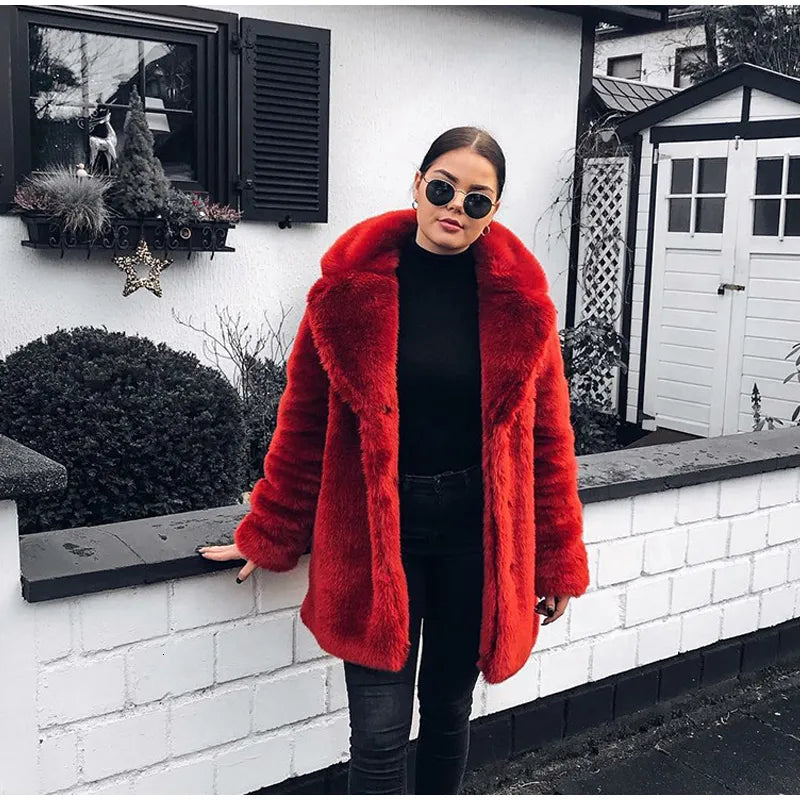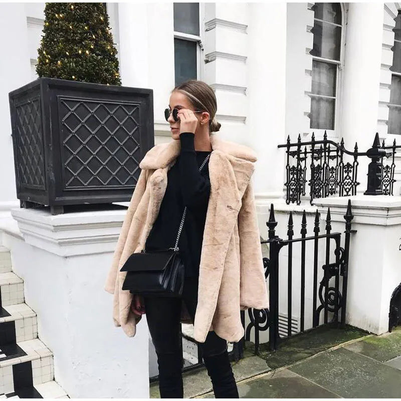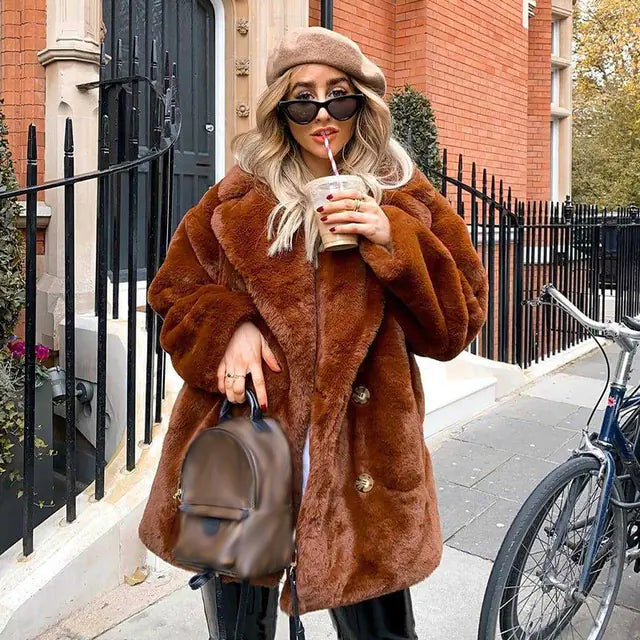 This stunning teddy coat is crafted from faux fur, ensuring you stay warm without compromising on style. Its thickened collar provides extra protection against the cold, while the loose fit allows for easy layering over your favorite outfits. Whether you're heading out for a casual day or dressing up for a night out, this coat is versatile enough to fit any occasion.