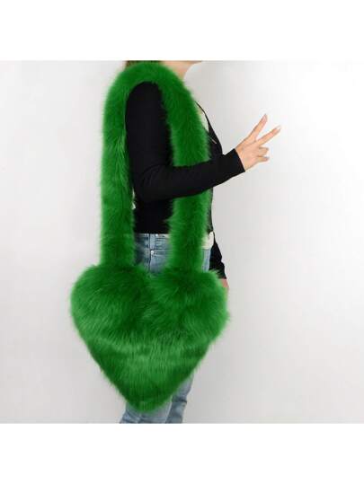 Tote your must-haves with flair using this cute heart-shaped plush crossbody bag. Its spacious design and vintage-inspired charm make it ideal for travel or everyday street style. Made from cozy faux fur, this fun shoulder bag brings a bubbly pop to your look.