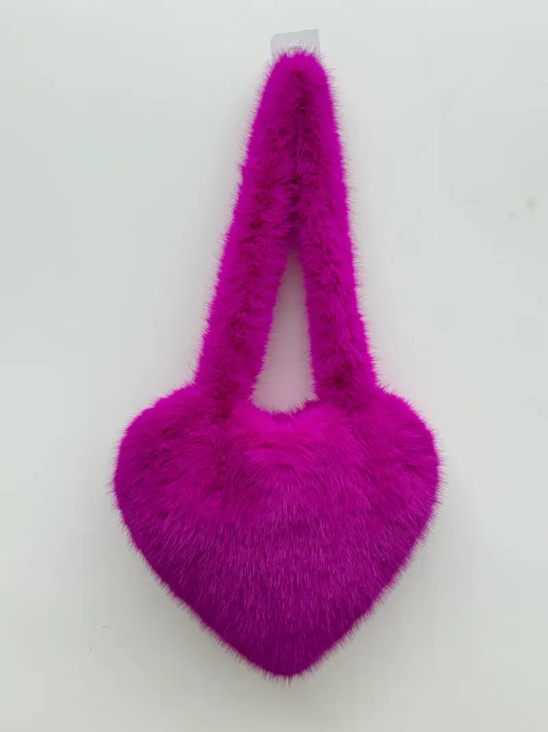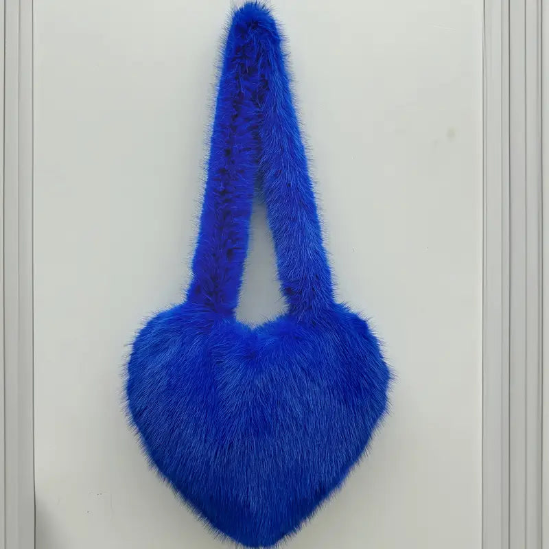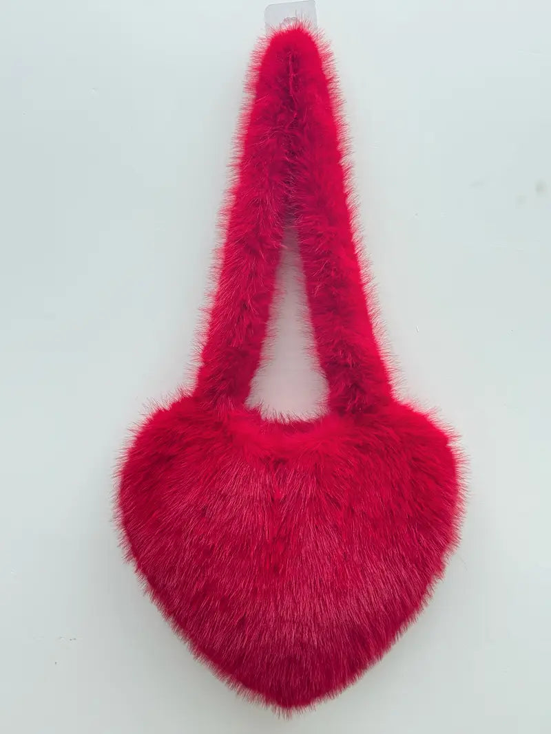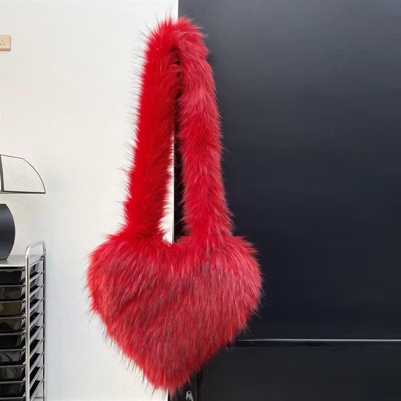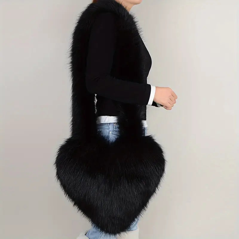 Carry your essentials in style with this adorable heart-shaped plush crossbody bag. Featuring a roomy interior and a vintage vibe, it’s perfect for travel or casual streetwear. Crafted from soft faux fur this playful shoulder bag adds a fun touch to any outfit.