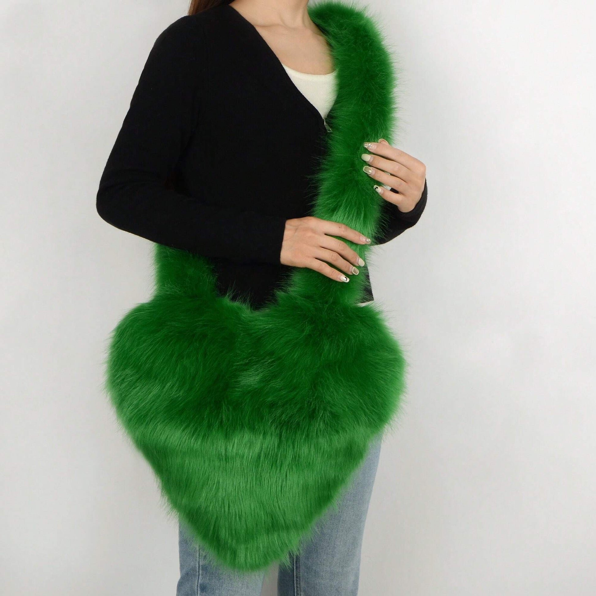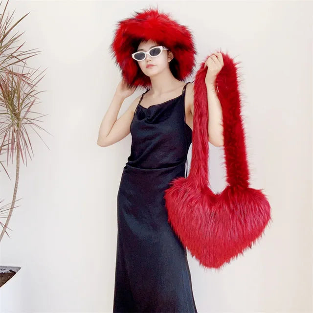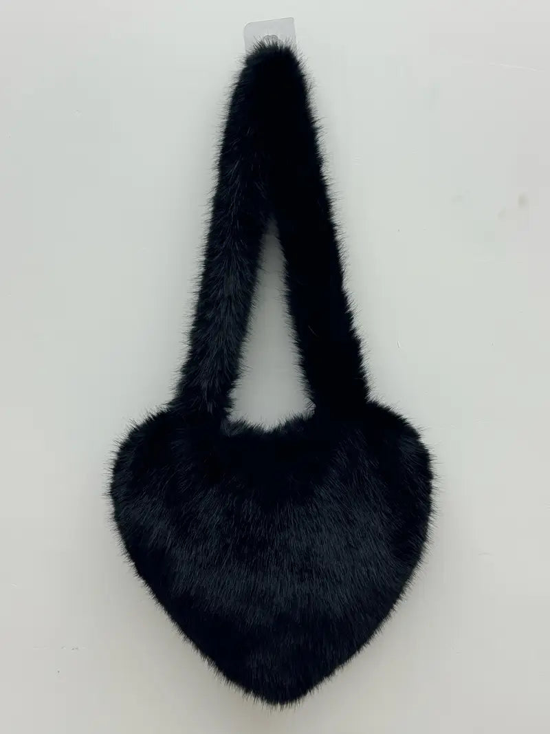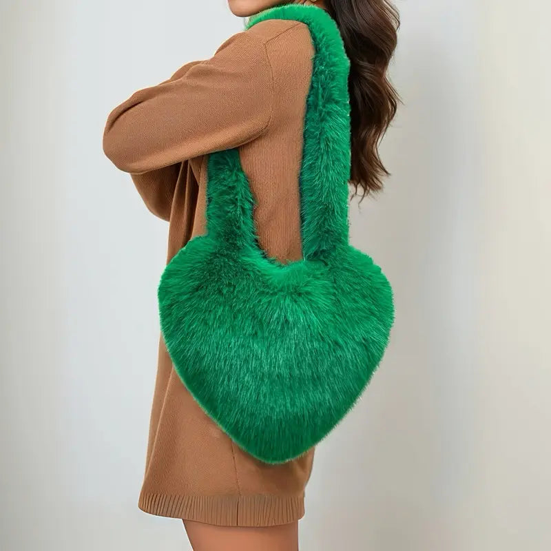 Carry your essentials in style with this adorable heart-shaped plush crossbody bag. Featuring a roomy interior and a vintage vibe, it’s perfect for travel or casual streetwear. Crafted from soft faux fur this playful shoulder bag adds a fun touch to any outfit.